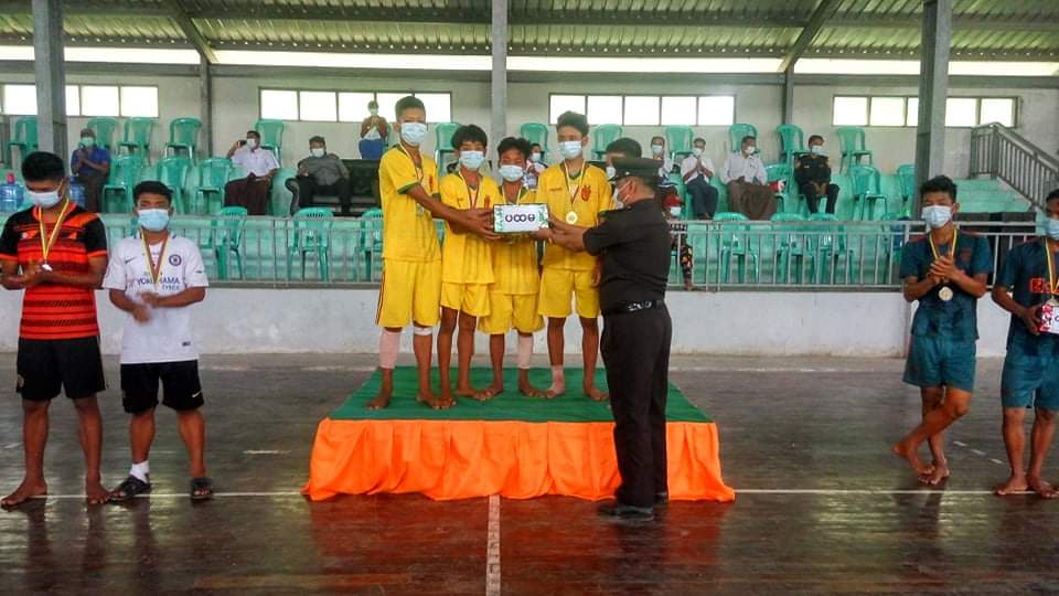 ဆုချီးမြှင့်ပွဲ အခမ်းအနားတွင် ဖူဆယ်ဘောလုံးပြိုင်ပွဲမှ ဆုရရှိကြသော အားကစားအသင်းများကို ဆုများချီးမြှင့်ရာ ပထမဆုရရှိသော (အ.ထ.က-နင်းကြမ်း) အသင်းအား မြို့နယ် စီမံအုပ်ချုပ်ရေးအဖွဲ့ဥက္ကဋ္ဌ ဦးသိန်းဆိုင်မှ တံခွန်စိုက်ဆုဖလားနှင့် ငွေသားဆုအားလည်ကောင်း၊ ဒုတိယဆုရရှိသော (အ.ထ.က(ခွဲ)ခြောက်ဆယ်) အသင်းအား လေးမျက်နှာမြို့နယ် ရဲမှူးအောင်ဆွှေသိန်းမှ လည်ဆွဲဆုတံဆိပ်နှင့် ငွေသားဆုအား လည်းကောင်း၊ တတိယဆုရရှိသော (အ.ထ.က-လေးမျက်နှာ) အသင်းအား မြို့နယ်ဘောလုံးအဖွဲ့ချုပ်ဒုဥက္ကဋ္ဌ ဦးအောင်ဇာလှမှ လည်ဆွဲဆုတံဆိပ်နှင့် ငွေသားဆုအား လည်းကောင်း ချီးမြှင့်ပေးအပ်ခဲ့သည်။