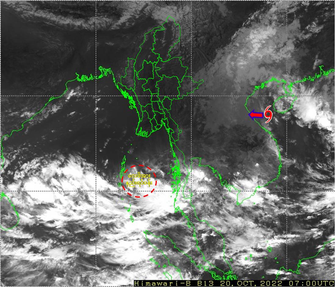 ယနေ့မြန်မာစံတော်ချိန် (၁၃:၃၀) နာရီ တိုင်းထွာချက်များအရ ကပ္ပလီပင်လယ်ပြင်နှင့် ယင်းနှင့် ဆက်စပ်လျက်ရှိသော ဘင်္ဂလားပင်လယ်အော် အရှေ့တောင်ပိုင်းတို့တွင် ဖြစ်ပေါ်နေသော လေဖိအားနည်း ရပ်ဝန်း (Low Pressure Area) သည် ဆက်လက်တည်ရှိနေသည်။ အဆိုပါလေဖိအားနည်းရပ်ဝန်း(Low Pressure Area)သည် အနောက် - အနောက်မြောက်ဘက်သို့ ရွေ့လျားနိုင်ပြီး၊ (၂၂.၁၀.၂၀၂၂) ရက်နေ့တွင် ဘင်္ဂလားပင်လယ်အော် အရှေ့အလယ်ပိုင်းနှင့် ယင်းနှင့်ဆက်စပ်လျက်ရှိသော ဘင်္ဂလားပင်လယ်အော် အရှေ့တောင်ပိုင်းတို့၌ မုန်တိုင်းငယ် (Depression) အဖြစ်သို့လည်းကောင်း၊ (၂၃.၁၀.၂၀၂၂) ရက်နေ့တွင် အားကောင်းသော မုန်တိုင်းငယ် (Deep Depression) အဖြစ်သို့လည်းကောင်း၊ ထိုမှတစ်ဆင့် မြောက်ဘက်သို့ ပြန်ကွေ့ကာ၊ (၂၄.၁၀.၂၀၂၂) ရက်နေ့တွင် ဘင်္ဂလားပင်လယ်အော် အနောက်အလယ်ပိုင်းနှင့် ယင်းနှင့် ဆက်စပ်လျက်ရှိသော ဘင်္ဂလားပင်လယ်အော် အရှေ့အလယ်ပိုင်း၌ ဆိုင်ကလုန်းမုန်တိုင်း (Cyclonic Storm) အဖြစ်သို့လည်းကောင်း အားကောင်းလာနိုင်သည်။ ထို့နောက် မြောက် − အရှေ့မြောက်ဘက်သို့ ရွေ့လျားနိုင်ပြီး၊ (၂၅.၁၀.၂၀၂၂) ရက်နေ့တွင် အိန္ဒိယနိုင်ငံ၊ အနောက်ဘင်္ဂလားပြည်နယ်− ဘင်္ဂလားဒေ့ရှ်နိုင်ငံ ကမ်းရိုးတန်းသို့ ရောက်ရှိနိုင်သည်ဟု ခန့်မှန်းရသည်။ ကပ္ပလီပင်လယ်ပြင်တောင်ပိုင်းနှင့် ဘင်္ဂလားပင်လယ်အော်တောင်ပိုင်းတို့တွင် တိမ်ထူထပ်နေပြီး၊ ကပ္ပလီပင်လယ်ပြင်မြောက်ပိုင်းနှင့် ကျန်ဘင်္ဂလားပင်လယ်အော်တို့တွင် တိမ်အနည်းငယ် ဖြစ်ထွန်းနေသည်။