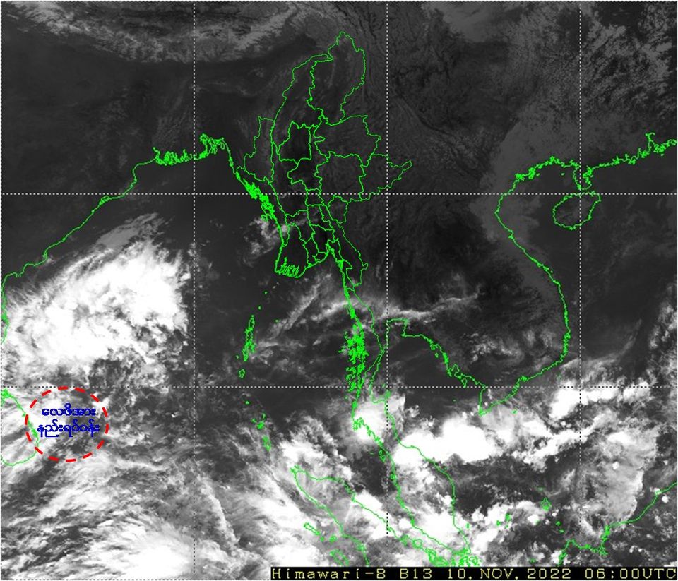 ဘင်္ဂလားပင်လယ်အော်အခြေအနေ။ ယနေ့မြန်မာစံတော်ချိန် (၁၂:၃၀)နာရီအချိန် တိုင်းထွာချက်များအရဘင်္ဂလားပင်လယ်အော်အနောက်တောင်ပိုင်းနှင့် ယင်းနှင့်ဆက်စပ်လျက်ရှိသောအီကွေတာအနီးအိန္ဒိယသမုဒ္ဒရာတို့တွင် ဖြစ်ပေါ်နေသောလေဖိအားနည်းရပ်ဝန်း(Low Pressure Area)သည်ဘင်္ဂလားပင်လယ်အော်အနောက်တောင်ပိုင်း၊ သီရိလင်္ကာကမ်းလွန်တွင် ဆက်လက်တည်ရှိနေပါသည်။ အဆိုပါ လေဖိအားနည်းရပ်ဝန်း(Low Pressure Area)သည် နောက်(၂၄)နာရီအတွင်းအနောက်မြောက်ဘက်သို့ ရွေ့လျားနိုင်ကာအိန္ဒိယနိုင်ငံ၊ တမီးလ်နာဒူး-ပူဒူချယ်ရီကမ်းခြေသို့ ရောက်ရှိနိုင်သည်ဟုခန့်မှန်းရပါသည်။ ဘင်္ဂလားပင်လယ်အော်မြောက်ပိုင်းတွင် တိမ်အနည်းငယ် ဖြစ်ထွန်းနေပြီး၊ ကပ္ပလီပင်လယ်ပြင်နှင့် ကျန်ဘင်္ဂလားပင်လယ်အော်တို့တွင် တိမ်အသင့်အတင့်မှ တိမ်ထူထပ်နေပါသည်။