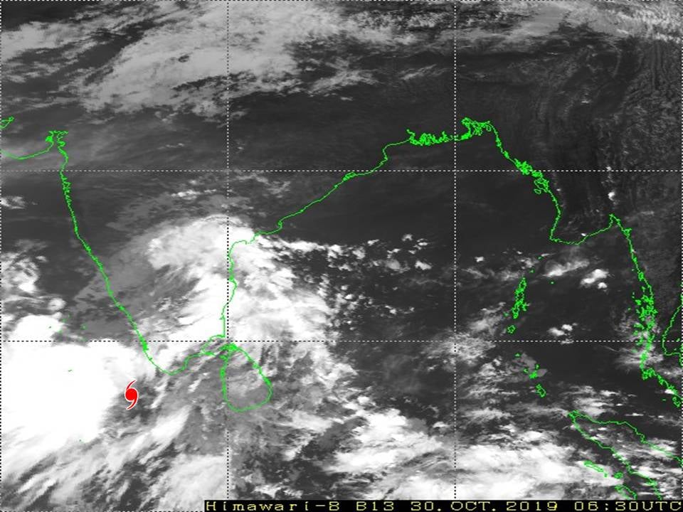 "ယနေ့မြန်မာစံတော်ချိန် မွန်းလွဲ ၁၂ နာရီခွဲ တိုင်းထွာချက်များအရ လက်ရှပ်ဝိ၊ မော်လ်ဒိုက်နှင့် ယင်းနှင့် ဆက်စပ်လျက်ရှိသော ကိုမိုရင်းဧရိယာ(Comorin area)တွင် ဖြစ်ပေါ်နေသော လေဖိအားနည်းရပ်ဝန်းသည် ပိုမိုအားကောင်းလာ ကာ မုန်တိုင်းငယ် (Depression) တစ်ခုအဖြစ်သို့ ရောက်ရှိခဲ့ပြီး၊ မော်လ်ဒိုက်-ကိုမိုရင်းဧရိယာတွင် ဆက်လက် တည်ရှိနေပါသည်။