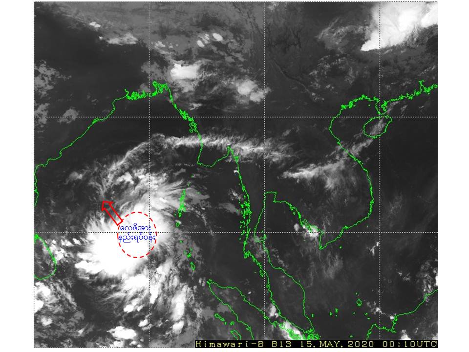 ယနေ့မြန်မာစံတော်ချိန် (၀၆:၃၀)နာရီအချိန် တိုင်းထွာချက်များအရ ဘင်္ဂလားပင်လယ်အော်အရှေ့တောင်ပိုင်းတွင် ဖြစ်ပေါ်နေသော လေဖိအားနည်းရပ်ဝန်းသည် ဆက်လက် တည်ရှိနေပြီး၊ ပိုမိုအားကောင်းလာကာ နောက်(၁၂)နာရီအတွင်း ဘင်္ဂလားပင်လယ်အော်တောင်ပိုင်းတွင် မုန်တိုင်းငယ် (Depression)အဆင့်သို့ လည်းကောင်း၊ (၁၆.၅.၂၀၂၀)ရက်နေ့တွင် ဆိုင်ကလုန်းမုန်တိုင်း (Cyclonic Storm)အဆင့်သို့ လည်းကောင်း ရောက်ရှိနိုင်ပါသည်။