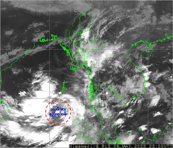 မိုးလေဝသနှင့်ဇလဗေဒညွှန်ကြားမှုဦးစီးဌာနက ယနေ့နံနက်ထုတ်ပြန်သည့် မိုးလေဝသ သတင်းအရ ဘင်္ဂလားပင် လယ်အော်အရှေ့တောင်ပိုင်းနှင့် ယင်းနှင့်ဆက်စပ်လျက်ရှိသော ကပ္ပလီပင်လယ်ပြင် တောင်ပိုင်းတို့တွင် ဖြစ်ပေါ်နေသော လေဖိအားနည်းရပ်ဝန်းသည် ဆက်လက်တည်ရှိနေသည်။ အဆိုပါ လေဖိအားနည်းရပ်ဝန်း (Low Pressure Area) သည် ပိုမိုအားကောင်းလာနိုင်ပြီး၊ နောက် (၁၈) နာရီအတွင်း မုန်တိုင်းငယ် (Depression) အဖြစ်သို့ လည်းကောင်း၊ ၁၀.၅.၂၀၂၃ ရက်နေ့တွင် ဘင်္ဂလားပင်လယ်အော် အရှေ့တောင်ပိုင်းနှင့် ယင်းနှင့်ဆက်စပ်လျက်ရှိသော ဘင်္ဂလားပင်လယ်အော် အလယ်ပိုင်းနှင့် ကပ္ပလီ ပင်လယ်ပြင်တို့တွင် ဆိုင်ကလုန်းမုန်တိုင်း (Cyclonic Storm) အဖြစ်သို့လည်းကောင်း ရောက်ရှိနိုင်သည်ဟုခန့်မှန်းရသည်။ အဆိုပါ ဆိုင်ကလုန်းမုန်တိုင်း(Cyclonic Storm) သည် ကနဦးတွင် မြောက်-အနောက်မြောက်ဘက်သို့ ရွေ့လျားပြီး ၁၁.၅.၂၀၂၃ ရက် နေ့တွင် ဘင်္ဂလားပင်လယ်အော် အရှေ့အလယ်ပိုင်းသို့ ရောက်ရှိကာ ထိုမှတဆင့် မြောက်-အရှေ့မြောက်ဘက်သို့ကွေ့ကာ ဘင်္ဂလားဒေ့ရှ်-မြန်မာ ကမ်းရိုးတန်းသို့ ရွေ့လျားနိုင်သည်ဟု ခန့်မှန်းရသည်။