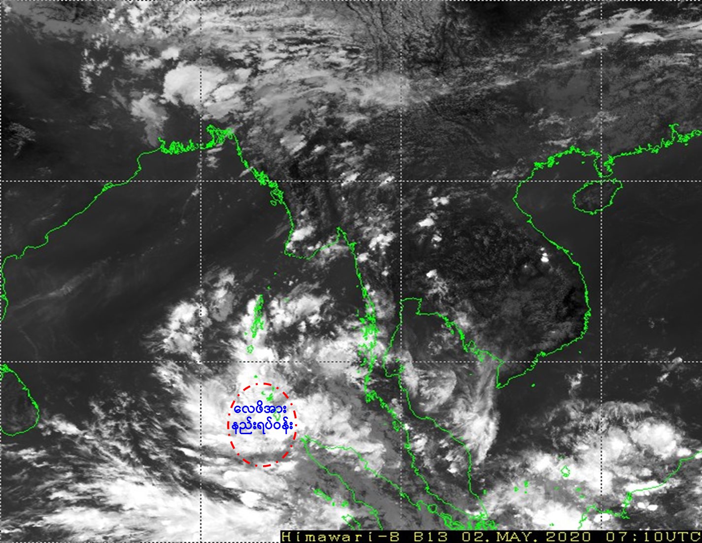 "ယနေ့မြန်မာစံတော်ချိန် (၁၃:၃၀)နာရီအချိန် တိုင်းထွာချက်များအရ ကပ္ပလီပင်လယ်ပြင်တောင်ပိုင်းနှင့် ယင်းနှင့်ဆက်စပ်လျက်ရှိသော ဘင်္ဂလားပင်လယ်အော်အရှေ့တောင်ပိုင်းတို့တွင် ဖြစ်ပေါ်နေသော လေဖိအားနည်းရပ်ဝန်းသည် ဆက်လက်တည်ရှိနေပါသည်။ အဆိုပါ လေဖိအားနည်းရပ်ဝန်းသည် ပိုမိုအားကောင်းလာကာ နောက်(၇၂) နာရီအတွင်း မုန်တိုင်းငယ် (Depression)အဖြစ်သို့ ရောက်ရှိပြီး၊ မြောက်-အနောက်မြောက်ဘက်သို့ တစ်ဖြည်းဖြည်း ရွေ့လျားနိုင်သည်ဟု ခန့်မှန်းရပါသည်။"