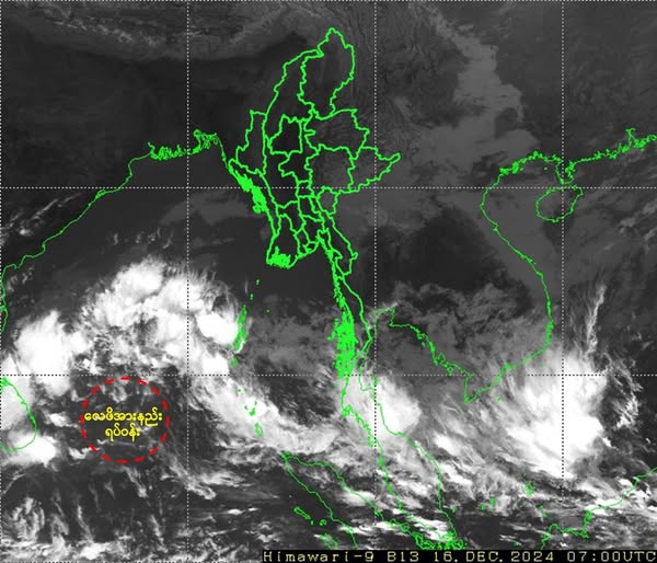“ယနေ့မြန်မာစံတော်ချိန် (၁၂:၃၀)နာရီအချိန် တိုင်းထွာချက်များအရ ဘင်္ဂလားပင်လယ်အော် တောင်ပိုင်းတွင် လေဖိအားနည်းရပ်ဝန်း(Low Pressure Area)တစ်ခု ဖြစ်ပေါ်နေပါသည်။ အဆိုပါ လေဖိအားနည်းရပ်ဝန်းသည် ပိုမိုအားကောင်းလာနိုင်ပြီး၊ အနောက်-အနောက်မြောက်ဘက်သို့ ရွေ့လျားနိုင်ကာ နောက် ၂ ရက်အတွင်း အိန္ဒိယနိုင်ငံ၊ တမီးလ်နာဒူးကမ်းခြေသို့ ရောက်ရှိနိုင်သည်ဟု ခန့်မှန်းရပါသည်၊၊”