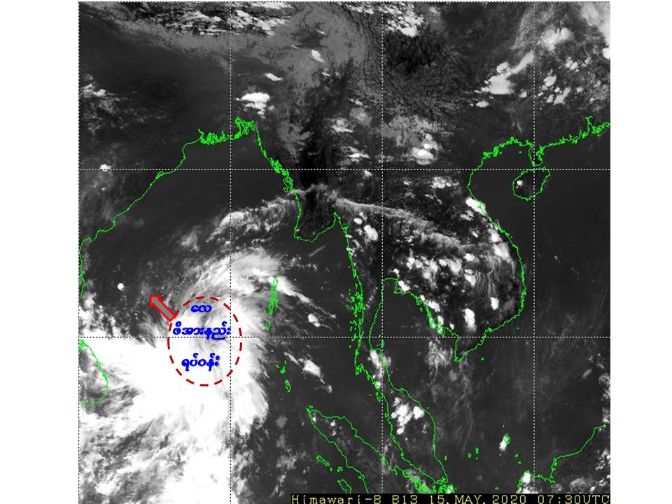 "ယနေ့မြန်မာစံတော်ချိန် (၁၃:၃၀)နာရီအချိန် တိုင်းထွာချက်များအရ ဘင်္ဂလား ပင်လယ်အော် အရှေ့တောင်ပိုင်းတွင် ဖြစ်ပေါ်နေသော လေဖိအားနည်းရပ်ဝန်းသည် ဆက် လက်တည်ရှိနေပြီး၊ ပိုမိုအားကောင်းလာကာ ယနေ့ညပိုင်းတွင် ဘင်္ဂလားပင်လယ်အော် တောင်ပိုင်း၌ မုန်တိုင်းငယ် (Depression)အဆင့်သို့ လည်းကောင်း၊ (၁၆.၅.၂၀၂၀)ရက်နေ့၊ ညပိုင်းတွင် ဆိုင်ကလုန်းမုန်တိုင်း (Cyclonic Storm)အဆင့်သို့ လည်းကောင်း ရောက်ရှိ နိုင်ပါသည်။ အဆိုပါ လေဖိအားနည်းရပ်ဝန်းသည် မုန်တိုင်းငယ်အဆင့်သို့ ရောက်ရှိပြီး နောက်၊ ကနဦးတွင် အနောက်မြောက်ဘက်သို့ ရွေ့လျားပြီး၊ (၁၇.၅.၂၀၂၀)ရက်နေ့ နောက်ပိုင်းတွင် မြောက်-အရှေ့မြောက်ဘက်သို့ကွေ့ကာ၊ ဘင်္ဂလားပင်လယ်အော် မြောက်ပိုင်းသို့ ရွေ့လျားနိုင်သည်ဟု ခန့်မှန်းရပါသည်။"