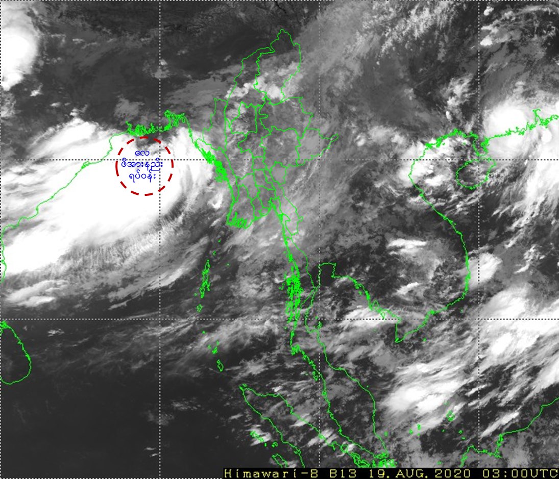 "ယနေ့မြန်မာစံတော်ချိန် (ဝ၉:၃၀)နာရီအချိန် တိုင်းထွာချက်များအရ ဘင်္ဂလားပင်လယ်အော် မြောက်ပိုင်းတွင် လေဖိအားနည်းရပ်ဝန်းတစ်ခု ဖြစ်ပေါ်နေပါသည်။"