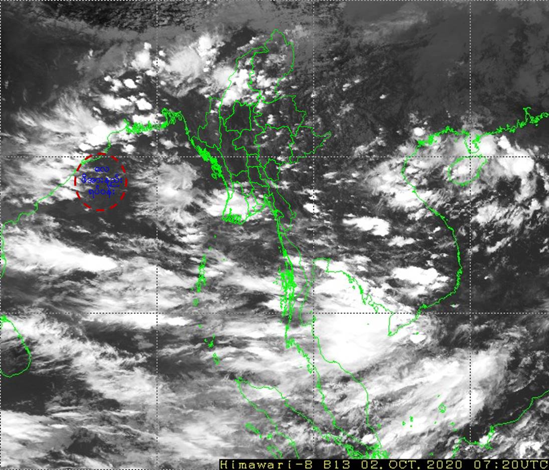 "ယနေ့မြန်မာစံတော်ချိန် (၁၃:၃၀)နာရီအချိန် တိုင်းထွာချက်များအရ ဘင်္ဂလားပင်လယ်အော်အနောက်အလယ်ပိုင်းနှင့် ယင်းနှင့်ဆက်စပ်လျက်ရှိသော ဘင်္ဂလားပင်လယ်အော်အနောက်မြောက်ပိုင်း (အိန္ဒိယနိုင်ငံ၊ အင်ဒရာပရာဒေ့ရှ်ပြည်နယ် မြောက်ပိုင်းကမ်းလွန်နှင့် ဩရိဿပြည်နယ်တောင်ပိုင်း ကမ်းခြေ) တို့တွင် ဖြစ်ပေါ်နေသော လေဖိအားနည်းရပ်ဝန်းသည် ဘင်္ဂလားပင်လယ်အော်အနောက်မြောက်ပိုင်းနှင့် ယင်းနှင့်ဆက်စပ်လျက်ရှိသော ဘင်္ဂလားပင်လယ်အော်အနောက်အလယ်ပိုင်း (အိန္ဒိယနိုင်ငံ၊ ဩရိဿပြည်နယ်ကမ်းလွန်-အင်ဒရာပရာဒေ့ရှ်ပြည်နယ် မြောက်ပိုင်းကမ်းခြေ)တို့တွင် ဆက်လက်တည်ရှိနေပါသည်။"