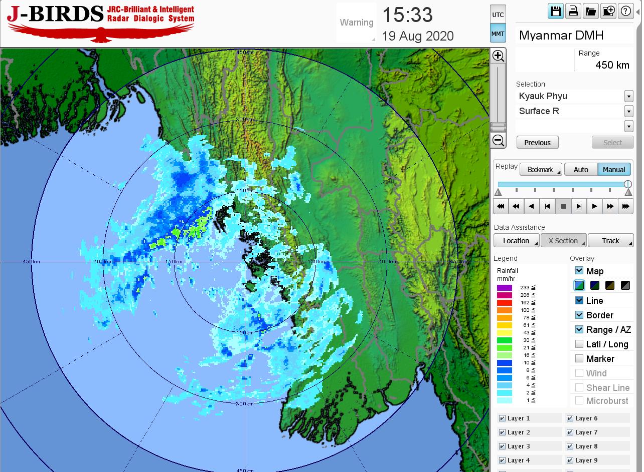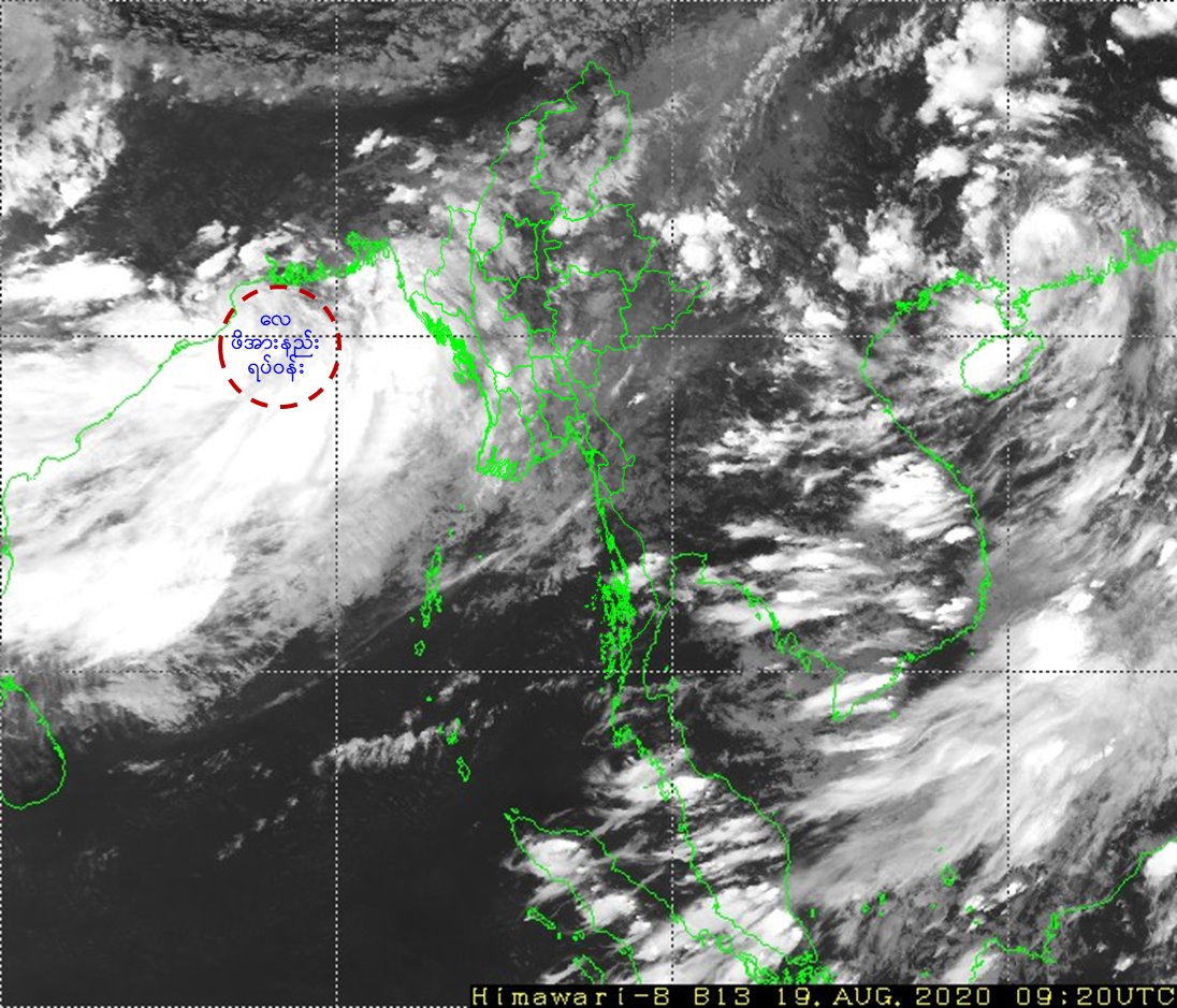 ဘင်္ဂလားပင်လယ်အော်အ‌ခြေအနေ။ ယနေ့မြန်မာစံတော်ချိန် (၁၃:၃၀)နာရီအချိန် တိုင်းထွာချက်များအရ ဘင်္ဂလားပင်လယ်အော်မြောက်ပိုင်းတွင် ဖြစ်ပေါ်ခဲ့သော လေဖိအားနည်းရပ်ဝန်းသည် ဘင်္ဂလားပင်လယ်အော် အနောက်မြောက်ပိုင်းတွင် ဆက်လက်တည်ရှိနေပါသည်။ အဆိုပါ လေဖိအားနည်းရပ်ဝန်းသည် နောက်(၂၄) နာရီအတွင်း မုန်တိုင်းငယ်(Depression)အဖြစ်သို့ ပိုမိုအားကောင်းလာကာ၊ အနောက်ဘက်သို့ ရွေ့လျားနိုင်သည်ဟု ခန့်မှန်းရပါသည်။ ကပ္ပလီပင်လယ်ပြင်နှင့် ဘင်္ဂလားပင်လယ်အော်အရှေ့တောင်ပိုင်းတို့တွင် မုတ်သုံလေ အားနည်းနေပြီး၊ ကျန်ဘင်္ဂလားပင်လယ်အော်တွင် မုတ်သုံလေ အားကောင်းနေပါသည်။
