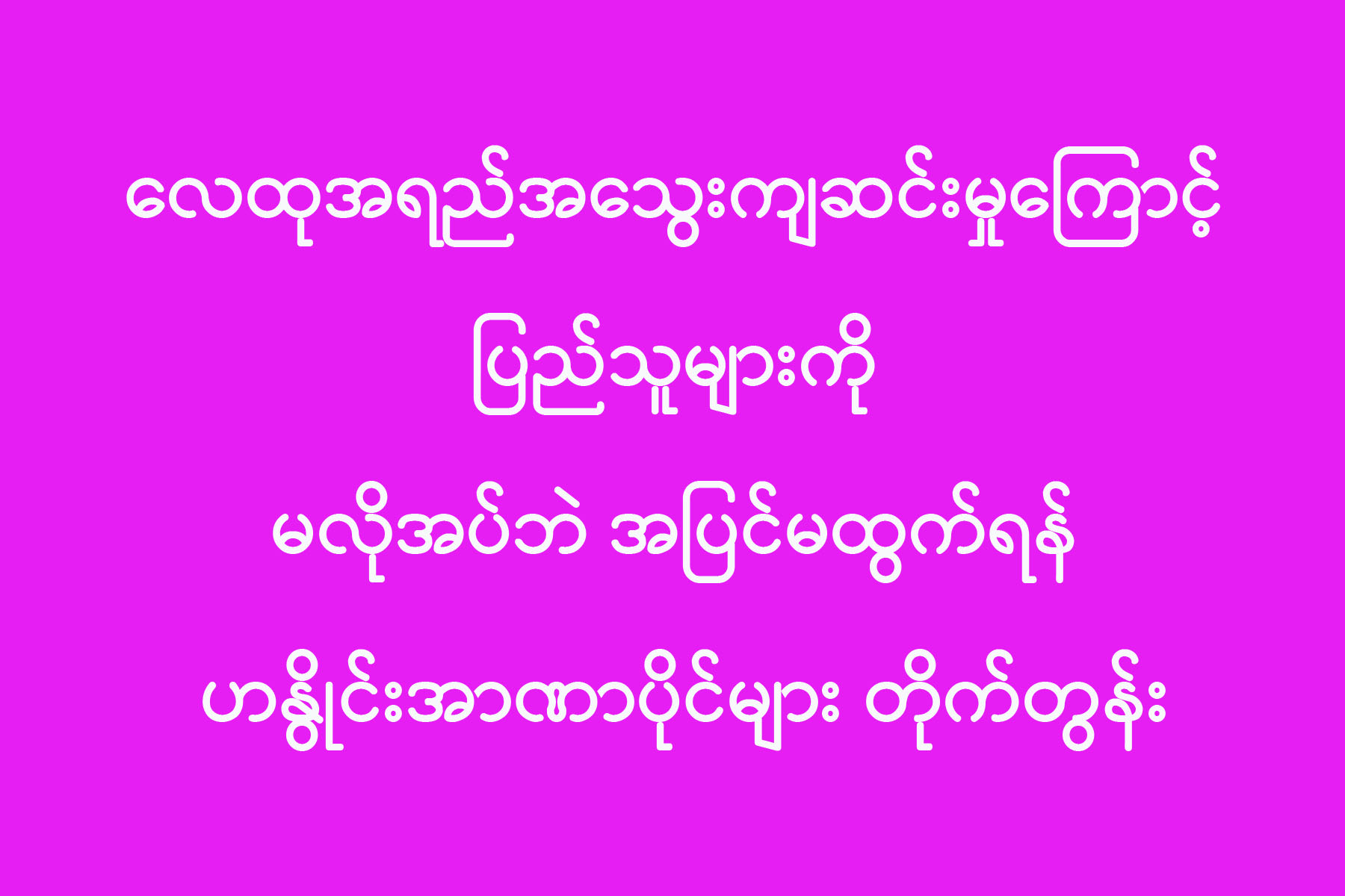 မြို့တော်ကျန်းမာရေးကဏ္ဍက နံနက်ပိုင်းအချိန်နှင့် ညအချိန်များတွင် ပြင်ပထိတွေ့မှုများ မပြုလုပ်ကြရန် အကြံပေးထားကြောင်း သိရသည်။ သဘာဝပတ်ဝန်းကျင်ညစ်ညမ်းမှု ပိုဆိုးလာချိန်တွင် အသက်ရှူလမ်းကြောင်းဆိုင်ရာ ရောဂါခံစားနေရသူများကို လိုအပ်သော ဆေးဘက်ဆိုင်ရာ ကုသမှုများလုပ်ဆောင်နိုင်ရန် မြို့တော်အတွင်းပိုင်း ဒေသများရှိ ဆေးရုံများကို အသင့် ပြင်ဆင်ထားသည်။
