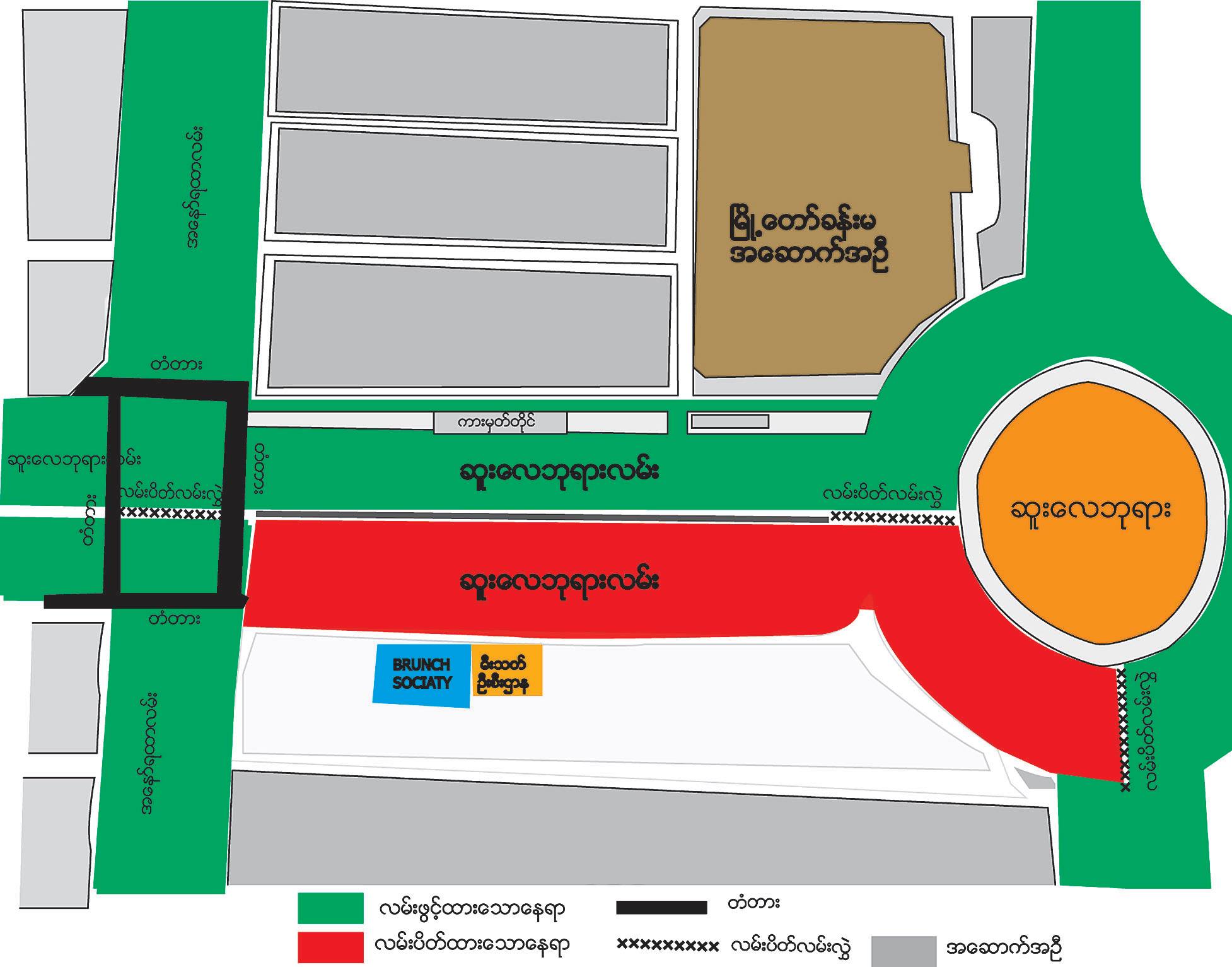 ဆူးလေဘုရားလမ်း၌ ဖေဖော်ဝါရီ ၂၂ ရက်မှ ၂၆ ရက်အထိ အနော်ရထာလမ်း လူကူးခုံးကျော်တံတားမှ ဆူးလေဘုရား လူကူးမျဉ်းကျား (မီးသတ်ဘက်ခြမ်း)ကို နံနက် ၆ နာရီမှ ညနေ ၆ နာရီအထိ ခေတ္တပိတ်ထားပါမည်။