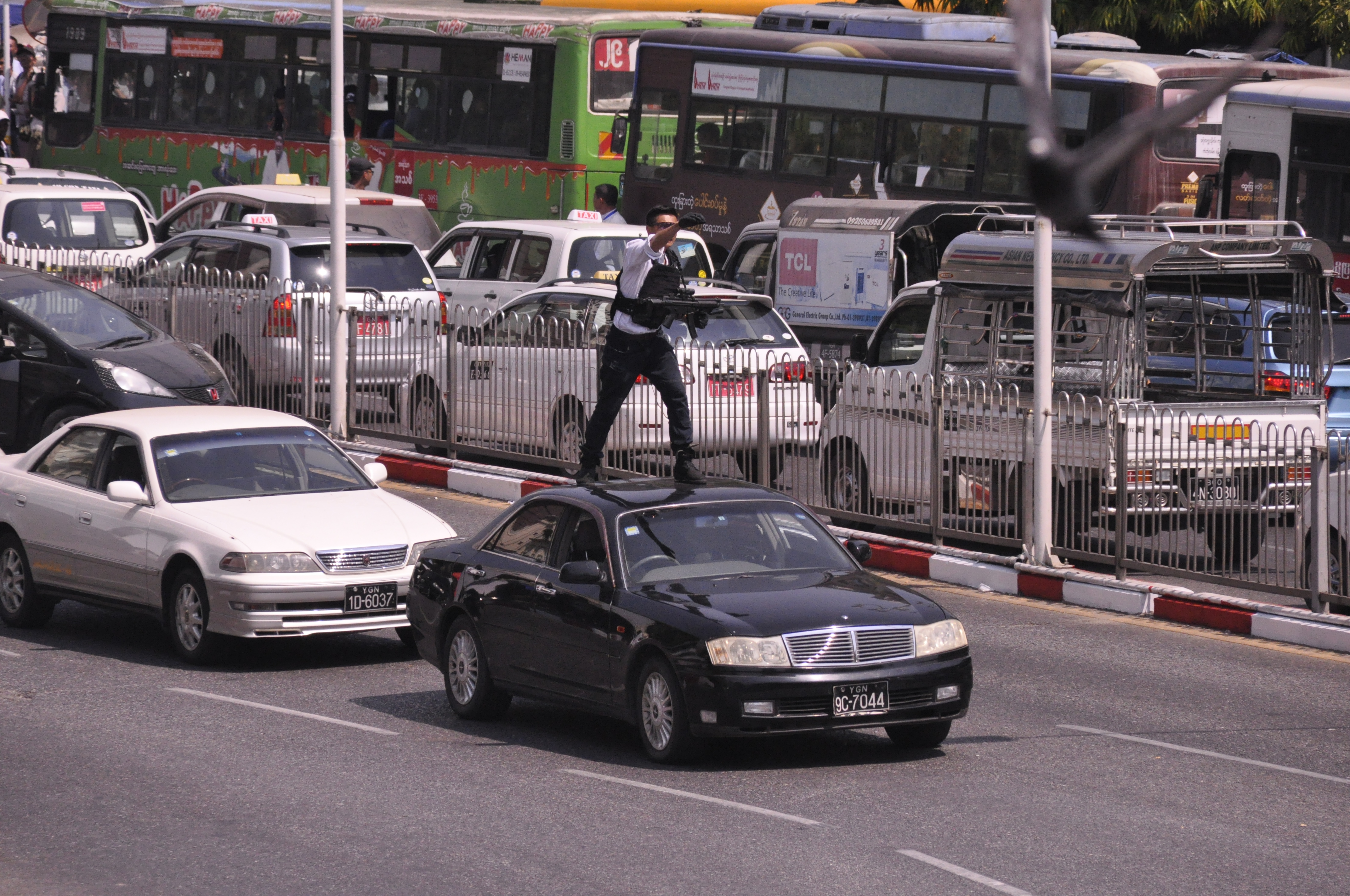 မြန်မာနိုင်ငံတွင် ဇာတ်ဝင်ခန်းအချို့ကို ရိုက်ကူးလျှက်ရှိသော Line Walker-2 ဇာတ်ကား၏ ဇာတ်ဝင်ခန်းအချို့ကို ဖေဖော်ဝါရီ ၂၅ ရက်နံနက် ၆ နာရီခွဲတွင် ရန်ကုန်မြို့လယ် ဆူးလေဘုရားမြောက်ဘက်မုခ်နှင့် ဆူးလေလူကူးခုံးကျော်တံတားကြား မီးသတ်စခန်းရှေ့ ဆူးလေလမ်းမကြီးပေါ်တွင် (၄)ရက်မြောက်နေ့အဖြစ် ဆက်လက်ရိုက်ကူးလျက်ရှိရာ သေနတ်ပစ်ခတ်သော အက်ရှင်ခန်းများ ပါဝင်သောကြောင့် ရန်ကုန်မြို့နေ ပြည်သူတို့ အထူးစိတ်ဝင်တစားကြည့်ရှုအားပေးခဲ့သည်။
