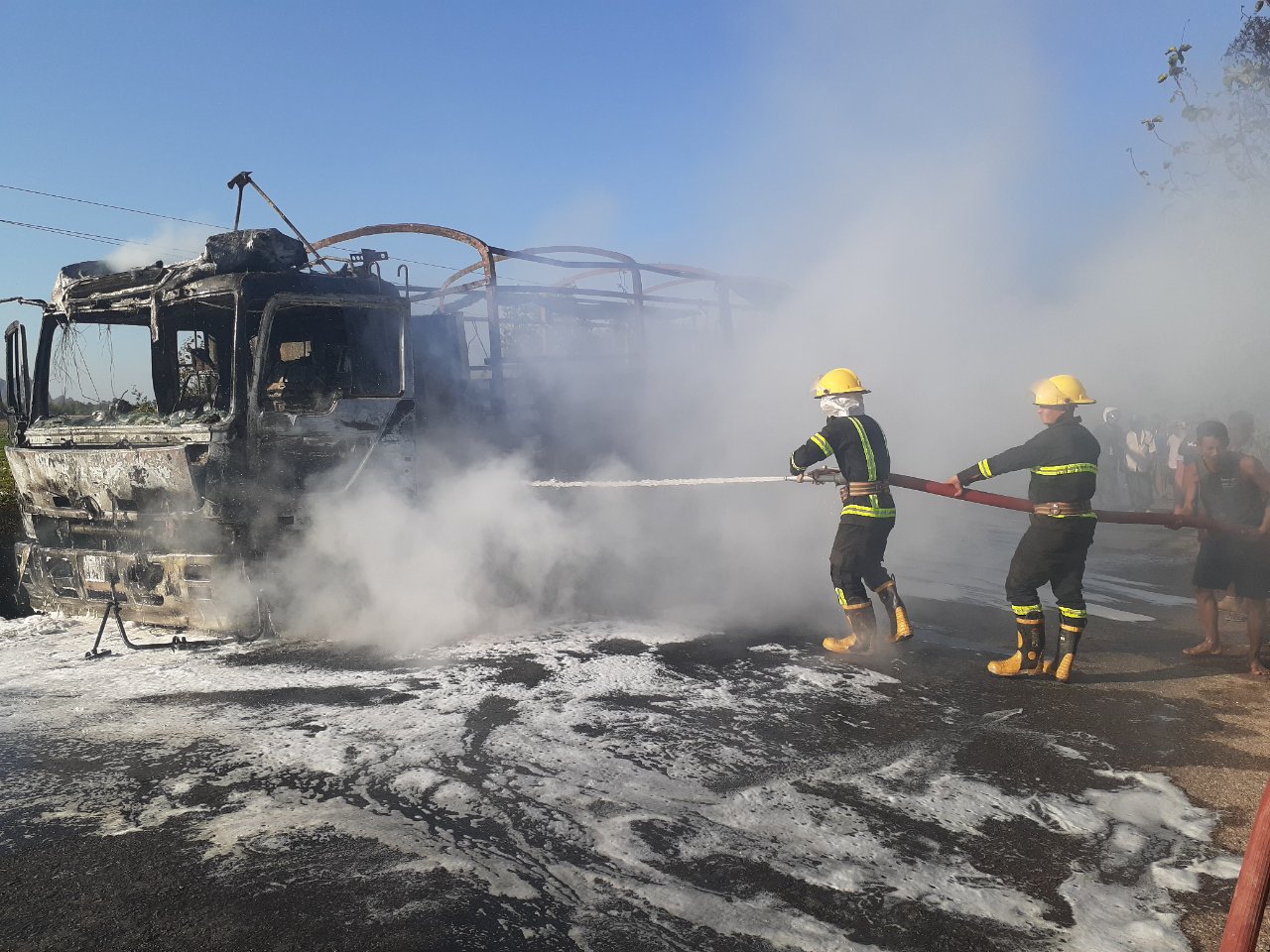 မီးလောင်မှုဖြစ်ပွားရာသို့ လှိုင်းဘွဲမြို့နယ် မီးသတ်ဦးစီးမှူး ဦးမောင်ညွန့် ဦးစီး၍ မီးသတ်တပ်ဖွဲ့ဝင် (၈)ဦး မော်တော်ယာဉ်(၂)စီး၊ ထီလုံနယ်မြေစခန်းမှူး ရဲအုပ် ရဲမင်းထွန့် ဦးစီးကာ တပ်ဖွဲ့ဝင်(၁၀)ဦး၊ ထီလုံကျေးရွာအုပ်ချုပ်ရေးမှူး ဦးခွန်အောင်ဝင်း၊ သမ္ဘာန်ကျေးရွာစာရေး ဦးစောထွန်းအောင်တို့မှ ပူးပေါင်း၍ မီးငြှိမ်းသတ်ခဲ့ရာ ညနေ ၄ နာရီ မိနစ် ၄၀ တွင် မီးငြှိမ်းသတ်နိုင်ခဲ့သည်။