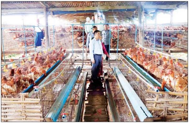 ယင်းနောက် လွိုင်ကော်မြို့ နမ့်ကွတ်ရပ်ကွက်ရှိ အသားတိုး ကြက်မွေးမြူရေးခြံများ၊ လွိုင်ကော်မြို့ ပန်ကန်းကျေးရွာရှိ ဥစားကြက် မွေးမြူရေးခြံများသို့ သွားရောက်ကာ ဥစားကြက်များ မွေးမြူအောင်မြင် ဖြစ်ထွန်းနေမှု အခြေအနေများကို လှည့်လည်ကြည့်ရှု စစ်ဆေးပြီး (ဝဲပုံ) ကြက်မွေးမြူရေး ခြံများသည် ပတ်ဝန်းကျင်အခြေ အနေကောင်းများရှိသဖြင့် ယခုထက် ပိုမိုတိုးချဲ့မွေးမြူနိုင်အောင် ကြိုးပမ်း ဆောင်ရွက်သွားရန် ဖြစ်ကြောင်း၊ အရင်းအနှီးလိုအပ် ချက်များရှိလာပါက နိုင်ငံ့စီးပွား မြှင့်တင်ရေး ရန်ပုံငွေမှ ထပ်မံပံ့ပိုး ကူညီပေးမည်ဖြစ်ကြောင်း၊ မွေးမြူ ရေးခြံများအား စံသတ်မှတ်ချက် များနှင့်အညီ စနစ်တကျ မွေးမြူ နိုင်အောင် ဆောင်ရွက်သွားကြရန် မှာကြားသည်။