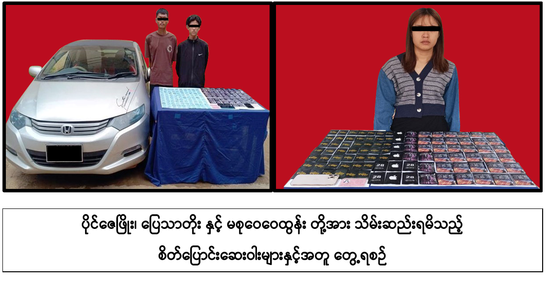 ထိုနေ့ ညနေ ၅ နာရီခွဲတွင် တာချီလိတ်မြို့၊ ဝိန်းကျောက်ရပ်ကွက်အတွင်းတွင် ဆမ်ဆွဲမောင်းနှင်ပြီး အီချာ လိုက်ပါလာသည့် TOYOTA CROWN အမျိုးအစား မော်တော်ယာဉ်ကို ရပ်တန့်စစ်ဆေးရှာဖွေရာ စိတ်ပြောင်းဆေးဝါးများဖြစ်သည့် ကက်တမင်း သုည ဒသမ ၈၇ ကီလို၊ Happy Water သုည ဒသမ ၂၂၅ ကီလိုကိုလည်းကောင်း၊ ထိုနေ့ ညနေ ၅ နာရီတွင် မင်္ဂလာဒုံမြို့နယ်၊ ချစ်တီးကုန်းရပ်ကွက်၊ ဗိုလ်မင်းရောင်လမ်းတွင် ပြည့်ဖြိုးအောင် (ခ) ကုလား မောင်းနှင်လာသည့် မော်တော်ဆိုင်ကယ်ကို ရပ်တန့်စစ်ဆေး ရှာဖွေရာစိတ်ကြွရူးသွပ်ဆေးပြား ၁၀,၀၀၀ ကိုလည်းကောင်း ကွင်းဆက်အရ ညနေ ၅ နာရီခွဲတွင် စိတ်ကြွရူးသွပ်ဆေးပြားများ ရောင်းချခိုင်းသူ မအိမြတ်မြတ်ဖူးကို အဆိုပါနေရာ၌ ဆက်လက်ဖမ်းဆီးရမိခဲ့သဖြင့် ၎င်းတို့အား မူးယစ်ဆေးဝါးနှင့် စိတ်ကိုပြောင်းလဲစေသောဆေးဝါးများ ဆိုင်ရာဥပဒေအရ အရေးယူထားကြောင်း သိရသည်။
