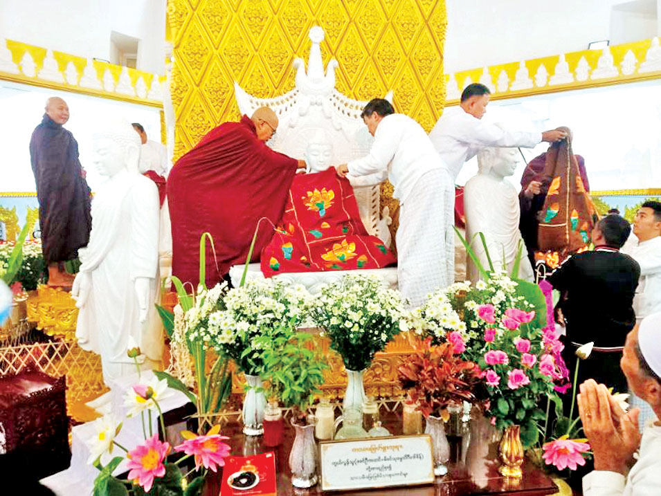 ရက်လုပ်ပြီးစီးသည့် မသိုးသင်္ကန်းများကို တန်ဆောင်မုန်းလပြည့်နေ့ နံနက် ၄ နာရီတွင် စေတီတော်အတွင်း၌ ကိန်းဝပ်စံတော်မူသော ဗုဒ္ဓရုပ်ပွားတော်ကိုးဆူအား ဆက်ကပ်လှူဒါန်းခြင်း၊ ဗုဒ္ဓါဘိသေက အနေကဇာတင်လှူခြင်းနှင့် လှူဒါန်းမှုအစုစုတို့အတွက် ရေစက်သွန်းချ အမျှပေးဝေခဲ့ကြောင်း သိရသည်။