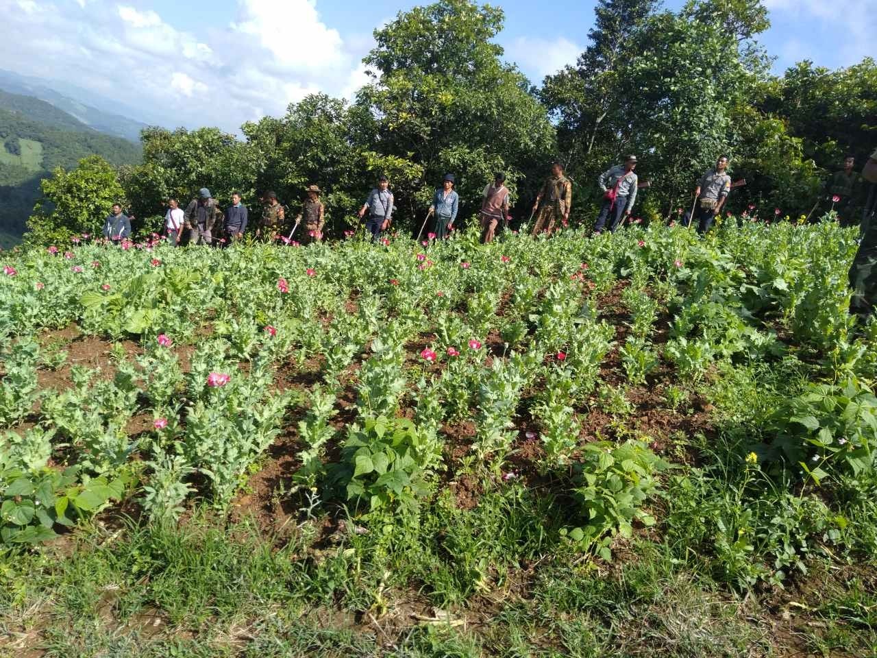 ရှမ်းပြည်နယ်၊ လွိုင်လင်မြို့နယ်ရဲတပ်ဖွဲ့မှ တပ်ဖွဲ့ဝင်များပါဝင်သည့် ပူးပေါင်းအဖွဲ့သည် နိုဝင်ဘာ ၁၂ ရက်တွင် တောင်နောက်ကျေးရွာ၏ တောင်ဘက် ၂ မိုင်ခန့်အကွာ အမြင့် ၂ ပေခွဲခန့်ရှိ သီးပွင့်ဆဲ ဘိန်းခင်း ၄ ဧကခန့်၊ ရီဝင်းကျေးရွာ၏ တောင်ဘက် ၃ ဖာလုံခန့်အကွာ၌ အမြင့် ၁ ပေခန့်ရှိ သီးပွင့်ဆဲ ဘိန်းခင်း ၄ ဧကခန့်နှင့် ဆိုင်ကန်ကျေးရွာ၏ မြောက်ဘက် ၂ ဖာလုံခန့် အကွာ၌ အမြင့် ၁ ပေခွဲခန့်ရှိ သီးပွင့်ဆဲ ဘိန်းခင်း ၇ ဧကခန့်တို့အား ဖျက်ဆီးဆောင်ရွက်ခဲ့ကြောင်း သိရသည်။