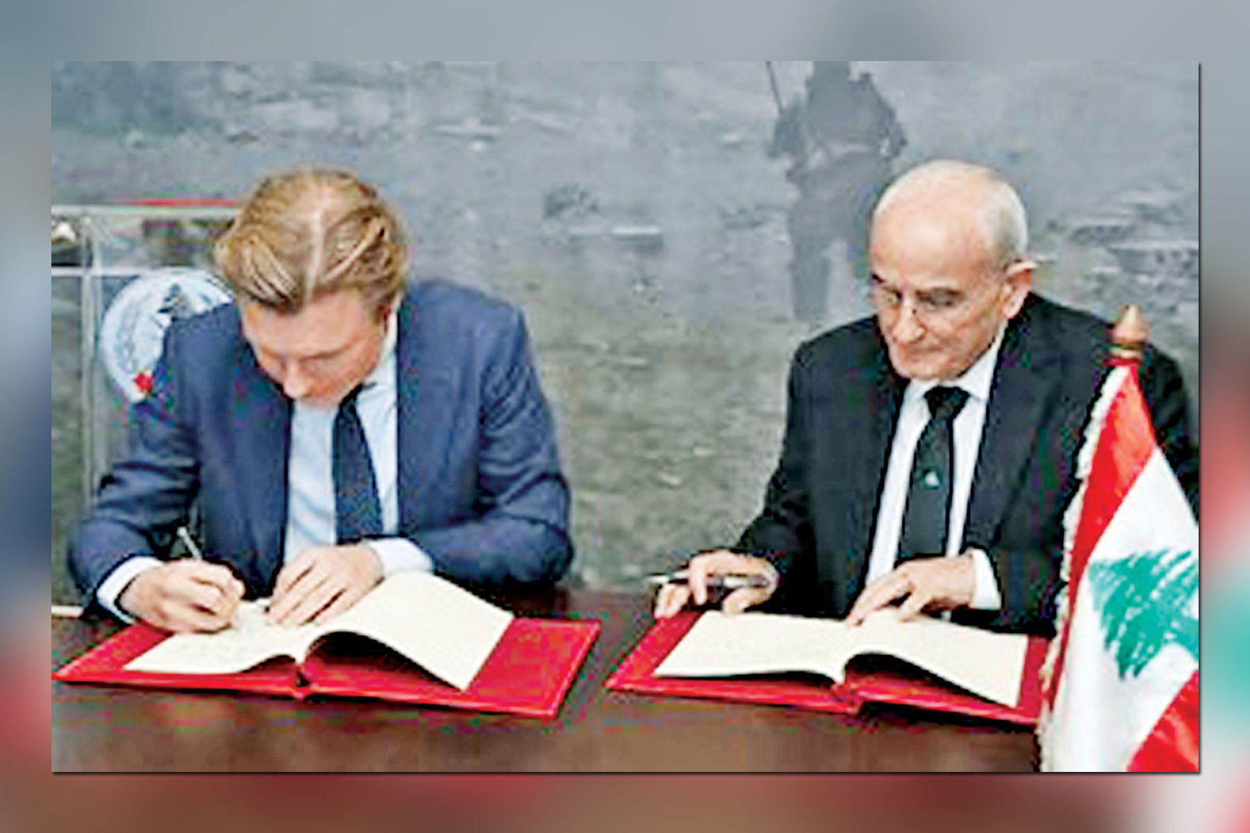 အဆိုပါ သဘောတူညီချက်ကို လက်ဘနွန်ကာကွယ်ရေးဝန်ကြီး မီချယ်မီနေဆာနှင့် နယ်သာလန်ကာကွယ်ရေးဝန်ကြီး ရူဗင်ဗရီကယ်မန်တို့က လက်မှတ်ရေးထိုးခဲ့ကြသည်။