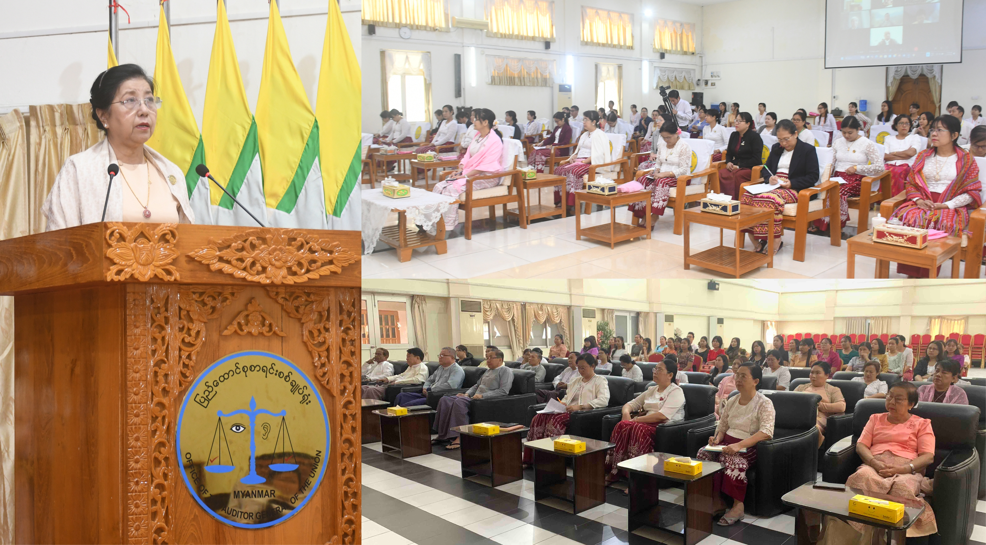 မြန်မာနိုင်ငံစာရင်းကောင်စီက ကြီးမှူးကျင်းပသည့် လက်မှတ်ရပြည်သူ့စာရင်းကိုင် (Certified Public Accountant–CPA)(ပထမပိုင်း) သင်တန်းအမှတ်စဉ် (၄၈) သင်တန်းဆင်းပွဲ အခမ်းအနားကို ယနေ့နံနက်ပိုင်းတွင် နေပြည်တော်ရှိ ပြည်ထောင်စုစာရင်း စစ်ချုပ်ရုံး၊ နဝရတ်ခန်းမ၌ Hybrid System ဖြင့် ကျင်းပရာ ပြည်ထောင်စုစာရင်းစစ်ချုပ် မြန်မာနိုင်ငံ စာရင်းကောင်စီဥက္ကဋ္ဌ ဒေါက်တာခင်နိုင်ဦး တက်ရောက်၍ သင်တန်းဆင်းအမှာစကားပြောကြားသည်။