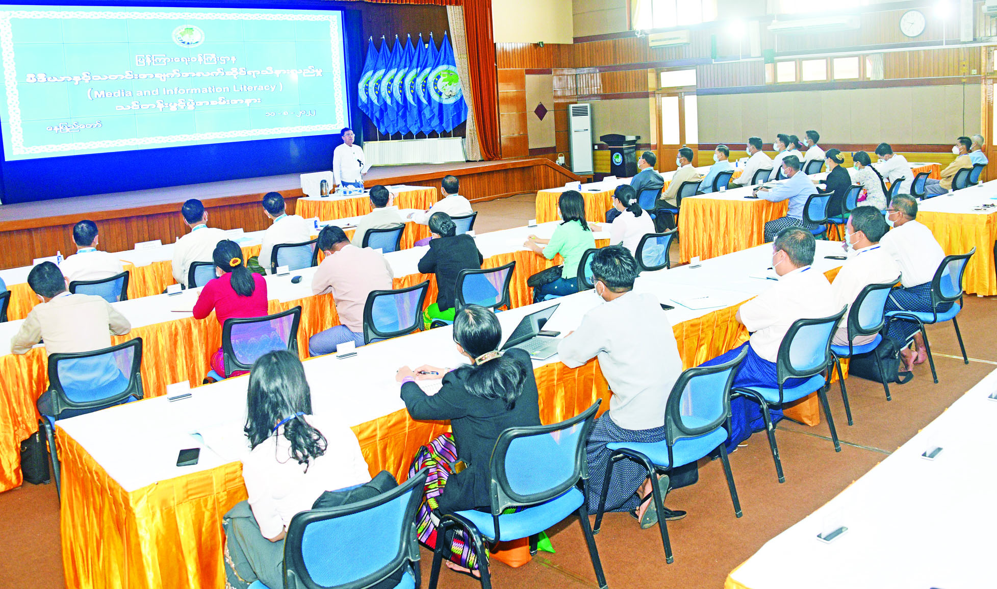 ပြန်ကြားရေးဝန်ကြီးဌာနက ကြီးမှူးဖွင့်လှစ်သည့် မီဒီယာနှင့် သတင်းအချက်အလက်ဆိုင်ရာ သိနားလည်မှု (Media and Infor-mation Literacy)  သင်တန်းဖွင့်ပွဲ အခမ်းအနားကို      ယနေ့နံနက် ၉    နာရီခွဲတွင်   နေပြည်တော်ရှိ ပြန်ကြားရေးဝန်ကြီးဌာန အစည်း အဝေးခန်းမ၌  ကျင်းပရာ အခမ်း အနားသို့  ဒုတိယဝန်ကြီး ဦးရဲတင့်၊ အမြဲတမ်းအတွင်းဝန် ဦးမျိုးမြင့် မောင်၊ ညွှန်ကြားရေးမှူးချုပ်များ နှင့် ဌာနဆိုင်ရာတာဝန်ရှိသူများ၊ သင်တန်းနည်းပြများ၊ ဝန်ကြီးဌာန အသီးသီးမှ      သင်တန်းသား၊ သင်တန်းသူများ တက်ရောက်ကြသည်။