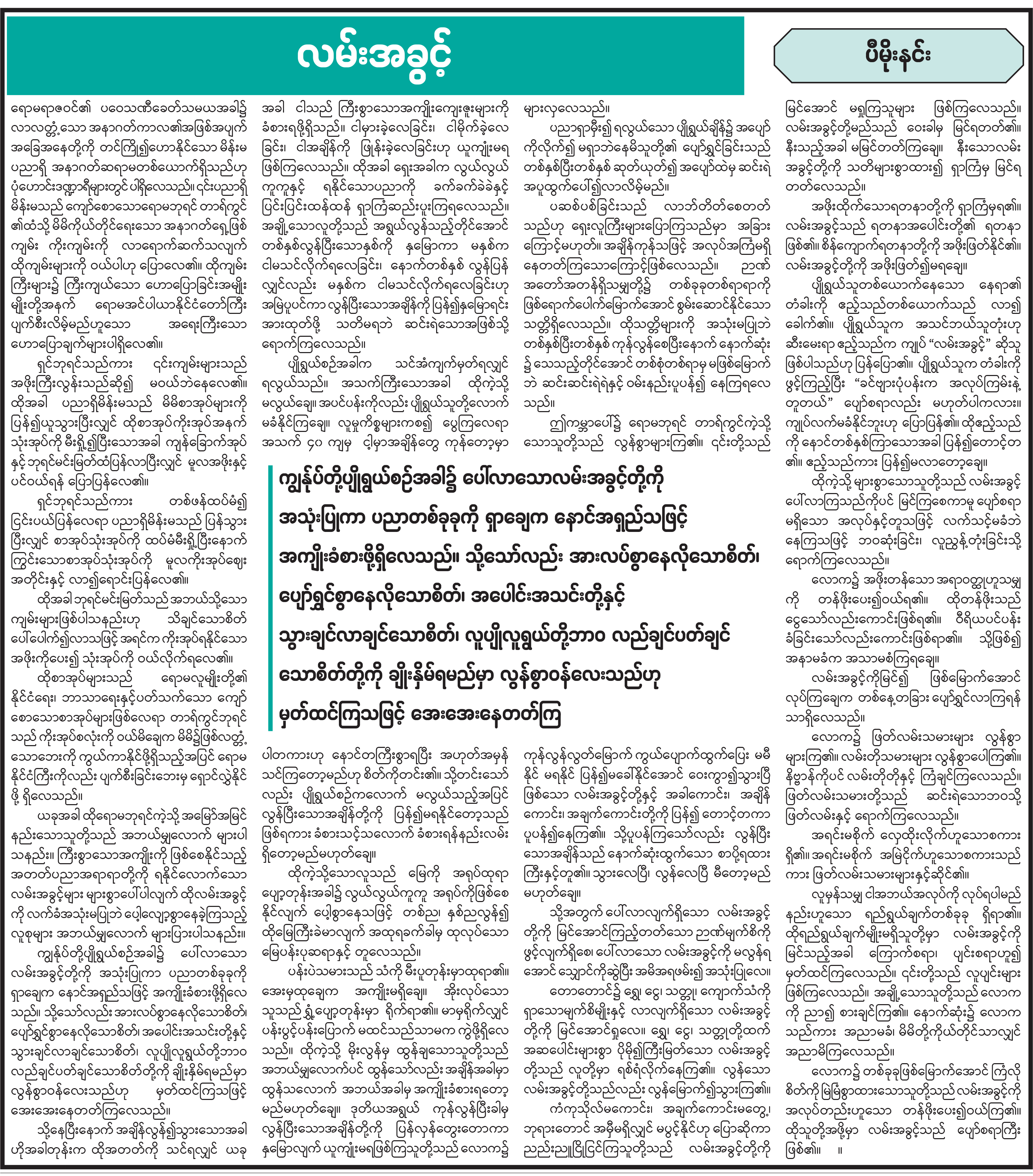 နိုင်ငံတည်ငြိမ်အေးချမ်းပြီး တရားဥပဒေစိုးမိုးမှုရှိစေရေး မိမိတို့အနေဖြင့် ဒီမိုကရေစီနည်းလမ်းဖြင့် ဆောင်ရွက်လျက်ရှိ တည်ငြိမ်အေးချမ်းပြီး တရားဥပဒေစိုးမိုးမှုရှိမှသာ ပြည်သူများ အလုပ်အကိုင်များ အဆင်ပြေချောမွေ့ပြီး နိုင်ငံဖွံ့ဖြိုးတိုးတက်လာမည်