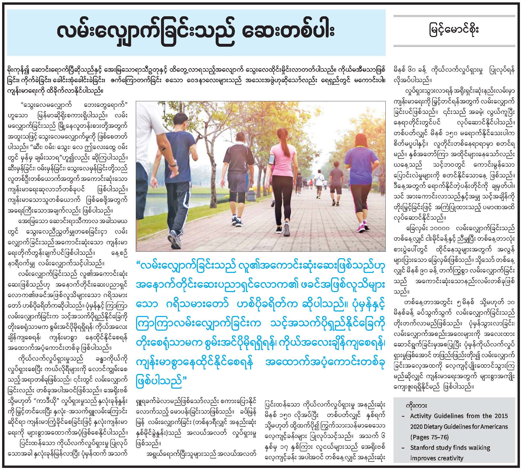 လမ်းလျှောက်ခြင်းသည် ဆေးတစ်ပါး