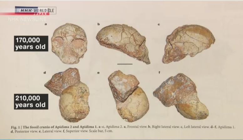 ဦးခေါင်းခွံတစ်ခုသည် လွန်ခဲ့သောနှစ်ပေါင်း နှစ်သိန်းတစ်သောင်း (၂၁၀ဝ၀ဝ) က ကျောက်ဖြစ်ရုပ်ကြွင်း တစ်ခုဖြစ်သည်။ အခြားဦးခေါင်းခွံတစ်ခုသည် လွန်ခဲ့သော နှစ်ပေါင်း တစ်သိန်းခုနှစ်သောင်း က ဥရောပကျောက်ခေတ်လူသား ဖြစ်သည်။