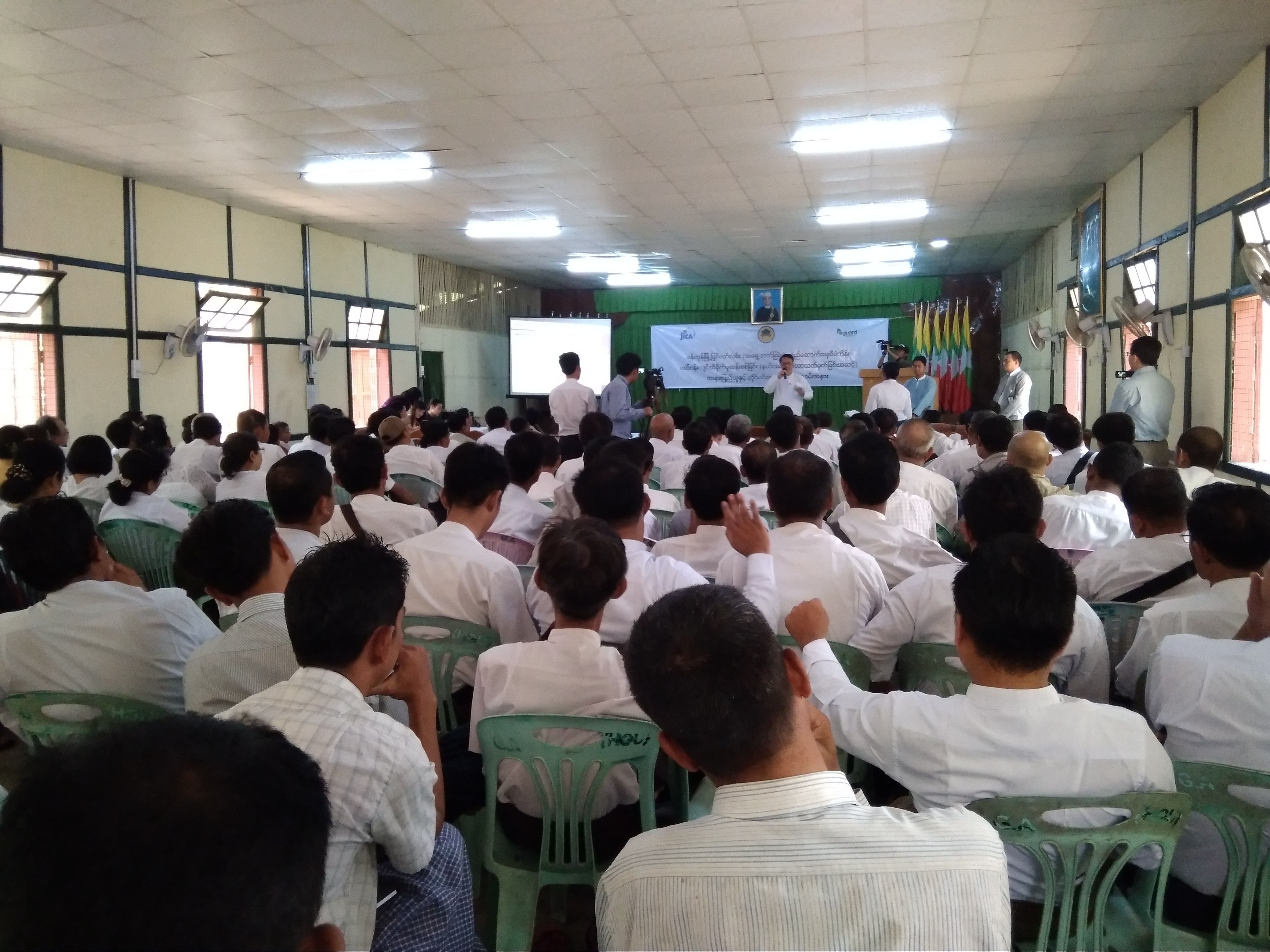 ဆောက်လုပ်ရေးဝန်ကြီးဌာန၊ လမ်းဦးစီးဌာန၊ တံတားဦးစီးဌာနနှင့် ဂျပန်အပြည်ပြည် ဆိုင်ရာ ပူးပေါင်းဆောင်ရွက်ရေး အေဂျင်စီ (JICA) တို့ ပူးပေါင်း ဆောင်ရွက်သည့် ရန်ကုန်မြို့ပြင်ပတ်လမ်း (အရှေ့ဘက်ခြမ်း) တည်ဆောက်ရေး စီမံကိန်းနှင့် ပတ်သက်၍ ပတ်ဝန်းကျင် ထိခိုက်မှုဆန်းစစ်ခြင်း (နယ်ပယ်တိုင်းတာ သတ်မှတ်ခြင်းအဆင့်) ပြည်သူလူထုနှင့် ပထမအကြိမ် တွေ့ဆုံဆွေးနွေးခြင်း အခမ်းအနားကို ယမန်နေ့ နံနက် ၉ နာရီက မြို့နယ်အထွေထွေအုပ်ချုပ်ရေးဦးစီးဌာန အစည်းအဝေးခန်းမ၌ ပြုလုပ်ခဲ့သည်။