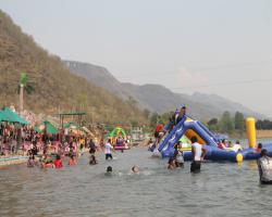 ယနေ့ သင်္ကြန်အကျနေ့ ဓနုဖြူမြို့ ဥမ္မာဒန္တီကမ်းခြေ၌ လာရောက်လည်ပတ်သူများဖြင့် စည်ကားလျက်ရှိနေ