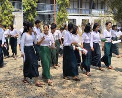 ပညာရေးဝန်ကြီးဌာန ဒုတိယဝန်ကြီး ဒေါက်တာဇော်မြင့်သည် တာဝန်ရှိသူများနှင့်အတူ ယနေ့နံနက်ပိုင်းတွင် မြောင်းမြပညာရေးဒီဂရီကောလိပ်သို့ ရောက်ရှိပြီး စာသင်ခန်းများအတွင်း ဆရာ၊ ဆရာမများက ဘာသာရပ်များကို သင်ကြားနည်းစနစ်တကျဖြင့် သင်ကြားပို့ချပေး နေမှုကို ကြည့်ရှုသည်။