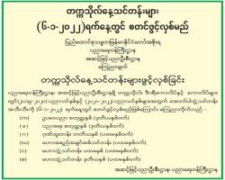 တက္ကသိုလ်များ ဖွင့်လှစ်ရေးလုပ်ငန်းညှိနှိုင်းအစည်းအဝေးကို ယနေ့နံနက် ၉ နာရီခွဲတွင် နေပြည်တော်ရှိ ပညာရေးဝန်ကြီးဌာန ရုံးအမှတ်(၁၃) အစည်းအဝေးခန်းမ၌ ကျင်းပသည်။