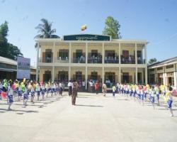 ရွှေရတု ကျောင်းဆောင်သစ်အား တိုင်းဒေသကြီး လွှတ်တော်ဥက္ကဋ္ဌနှင့် ဧည့်သည်တော်များက ဖဲကြိုးဖြတ် ဖွင့်လှစ်ပေး