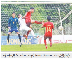 Local Sports အားကစားသတင်းများ တရုတ်-အာဆီယံ ပိုက်ကျော်ခြင်းပြိုင်ပွဲတွင် မြန်မာပိုက်ကျော်ခြင်းအသင်း ရွှေတံဆိပ်နှစ်ခု၊ ကြေးတံဆိပ်နှစ်ခု ဆွတ်ခူးရရှိ အားကစား 05/06/25 ရှမ်းပြည်နယ်ဝန်ကြီးချုပ် ဦးအောင်အောင် ၂၀၂၅ ခုနှစ် တိုင်းဒေသကြီးနှင့် ပြည်နယ် အမျိုးသား၊ အမျိုးသမီးဘော်လီဘော ပြိုင်ပွဲ ဒုတိယနေ့ပြိုင်ပွဲများ တက်ရောက်ကြည့်ရှုအားပေး အားကစား 05/06/25 MNL ယူ-၂၁ လိဂ်ပြိုင်ပွဲတွင် ရန်ကုန်ယူနိုက်တက်အသင်း နိုင်ပွဲပြန်ရပြီး ရတနာပုံနှင့် ဟံသာဝတီ သရေကျ အားကစား 02/06/25 အိုလံပစ်နေ့အထိမ်းအမှတ် မြန်မာနိုင်ငံ ရိုးရာလက်ဝှေ့အဖွဲ့ချုပ်ဖလား Gym ပေါင်းစုံ ရိုးရာလက်ဝှေ့ပြိုင်ပွဲ ကျင်းပ အားကစား 02/06/25 အိုလံပစ်နေ့အထိမ်းအမှတ် မြန်မာနိုင်ငံ ရိုးရာလက်ဝှေ့အဖွဲ့ချုပ်ဖလား Gym ပေါင်းစုံ ရိုးရာလက်ဝှေ့ပြိုင်ပွဲကျင်းပ အားကစား 02/06/25 ယူ-၁၆ ဖူဆယ်လိဂ်ပြိုင်ပွဲ ပထမအကျော့ပြီးဆုံးခဲ့ပြီး Kyaung Sayar Tharhtwe အသင်း ၁၁ ပွဲစလုံးအနိုင်ရပြီး ဦးဆောင် အားကစား 02/06/25 နိုင်ငံတကာကရာတေးအဖွဲ့ချုပ်မှ ကြီးမှူးသည့် IKO Kids and Youths Tournament ၂၀၂၅ ကရာတေးပြိုင်ပွဲ ကျင်းပ အားကစား 26/05/25 ရန်ကုန်တိုင်းဒေသကြီး အမျိုးသမီးရေးရာအဖွဲ့က ကြီးမှူး၍ နွေရာသီ အေရိုးဗစ်သင်တန်း ဖွင့်လှစ်လျက်ရှိ အားကစား 10/03/25 ဒုတိယဝန်ကြီး ဦးထိန်လင်း ရန်ကုန်မြို့ရှိ အားကစားကွင်း/ အားကစားရုံများ ကြည့်ရှုစစ်ဆေး အားကစား 09/03/25 လာမည့်ရက်ပိုင်းအတွင်း ကျင်းပမည့် ONE MMA ပြိုင်ပွဲများတွင် မြန်မာဖိုက်တာသုံးဦး၏ တွဲဆိုင်းများပါဝင်မည် အားကစား 04/03/25 Pagination First page « First Previous page ‹ Previous … စာမျက်နှာ 39 စာမျက်နှာ 40 လက်ရှိစာမျက်နှာ 41 စာမျက်နှာ 42 စာမျက်နှာ 43 … Next page Next › Last page Last » အဖတ်များဆုံး သတင်း သံသရာဝဋ်ဆင်းရဲမှလွတ်ကင်းအောင် မှန်ကန်သောအကျင့်မြတ်ကျင့်သုံး…(ကြေးမုံ) အယ်ဒီတာ့ အာဘော် 2/Jan/2026 ကင်မရွန်းက မိုဇမ်ဘစ်ကို အနိုင်ယူပြီး အာဖရိကနိုင်ငံများဖလားပြိုင်ပွဲ ၁၆ သင်းအဆင့်တက်လှမ်း အားကစား 2/Jan/2026 ဒလမြို့နယ်၌ မျိုးစေ့ချကိရိယာဖြင့် နွေစပါး လက်တွေ့စိုက်ပျိုး စီးပွားရေး 2/Jan/2026 ကလောမြို့ မောမြေဦးပန်းခြံ၌ ပထမအကြိမ် ပန်းပွဲတော်ကျင်းပ ယဉ်ကျေးမှုနှင့် ခရီးသွား 2/Jan/2026 အများပြည်သူသို့ အသိပေးကြေညာချက် ပြည်တွင်း 2/Jan/2026