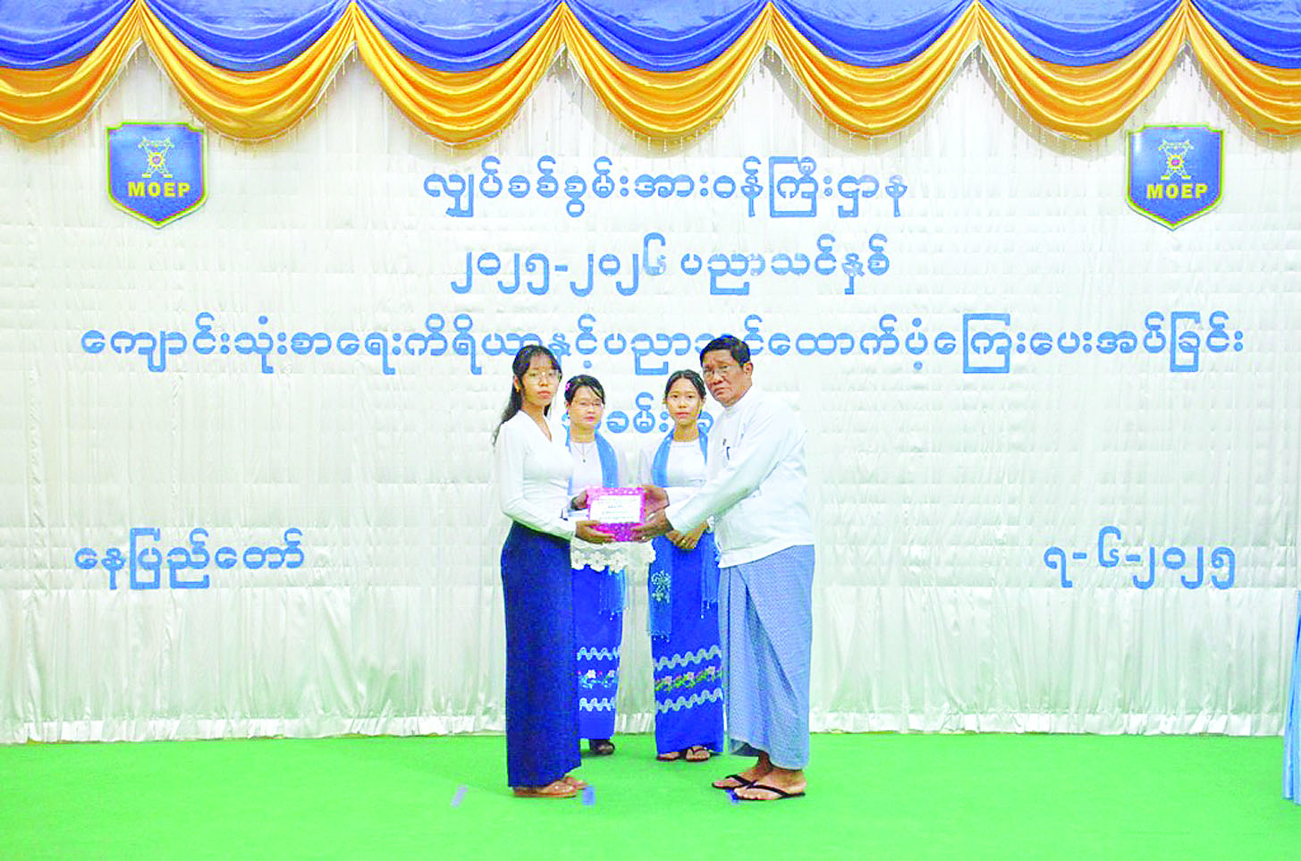 ထို့နောက် ပြည်ထောင်စုဝန်ကြီးက တက္ကသိုလ်၊ အထက်တန်းနှင့် အလယ်တန်းကျောင်းသား ကျောင်းသူများအား ပညာသင်ထောက်ပံ့ကြေးနှင့် ကျောင်းသုံးစာရေးကိရိယာများကိုလည်းကောင်း၊ ဒုတိယဝန်ကြီးက မူလတန်းနှင့် မူကြိုကျောင်းသား ကျောင်းသူများအား ပညာသင်ထောက်ပံ့ကြေးနှင့် ကျောင်းသုံး စာရေးကိရိယာများကိုလည်းကောင်း ထောက်ပံ့ပေးအပ်သည်။