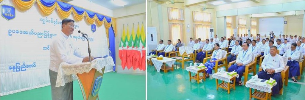 ဦးစွာ ပြည်ထောင်စုဝန်ကြီးက အမှာစကားပြောကြားရာတွင် မိမိတို့ဝန်ကြီးဌာနတွင် တာဝန်ထမ်းဆောင်နေသော ဝန်ထမ်းများအနေဖြင့် ဥပဒေသဘောတရားများ သိရှိနားလည်ပြီး၊ ဥပဒေအားလေးစားလိုက်နာသော နိုင်ငံ့ဝန်ထမ်းကောင်းများ ဖြစ်လာစေရန်၊ လုပ်ငန်းအလိုက် ချမှတ်ပြဌာန်းထားသည့် ဥပဒေအသိပညာများကိုလည်း သိရှိရန်လိုအပ်သလို သက်ဆိုင်ရာလုပ်ငန်းနယ်ပယ်များတွင်လည်း လက်တွေ့ သိရှိလိုက်နာကျင့်သုံးနိုင်ခြင်းဖြင့် ပေးအပ်သောတာဝန်များကို နည်းလမ်းမှန်ကန်စွာ စွမ်းဆောင်ရည်မြင့်မားစွာဖြင့် ကျေပွန်စွာတာဝန်ထမ်းဆောင်နိုင်သည့် အရည်အသွေးများ ရရှိလာနိုင်ရေးအတွက် ရည်ရွယ်ပြီး ဖွင့်လှစ်ခြင်းဖြစ်ပါကြောင်း၊ “ဥပဒေကိုမသိ၍ ပြစ်မှုကျူးလွန်ခဲ့သည်” ဆိုသော အဖြစ်မျိုးမဖြစ်စေရေးအတွက် နိုင်ငံသားတိုင်း ဥပဒေနှင့်စပ်လျဉ်းသည့် အသိပညာဗဟုသုတရှိစေရန် လိုအပ်သည့်အတွက် အခြေခံအားဖြင့် သိသင့်သိထိုက်သောဥပဒေများ၏ သတ်မှတ်ပြဌာန်းချက်များကို မှတ်သားသိရှိနေရန် လိုအပ်ပါကြောင်း၊ ထို့ကြောင့် ယခုသင်တန်းတွင် လျှပ်စစ်ဥပဒေအပါအဝင်၊ နိုင်ငံ့ဝန်ထမ်းဥပဒေ၊ ဖွဲ့စည်းပုံအခြေခံဥပဒေ၊ မိမိတို့ဝန်ကြီးဌာနလုပ်ငန်းများနှင့် ဆက်နွယ်နေသော မြေယာဆိုင်ရာဥပဒေများ၊ ပတ်ဝန်းကျင်ထိန်းသိမ်းရေးဆိုင်ရာ ဥပဒေ၊ မူဝါဒနှင့် မဟာဗျူဟာများနှင့် ဥပဒေမူကြမ်းရေးဆွဲခြင်းစသည်တို့ အပါအဝင် ဘာသာရပ် (၁၁) မျိုးကို အသိပညပြန့်ပွားစေရေး သင်ကြားပို့ချသွားမည်ဖြစ်ပါကြောင်း ပြောကြားသည်။