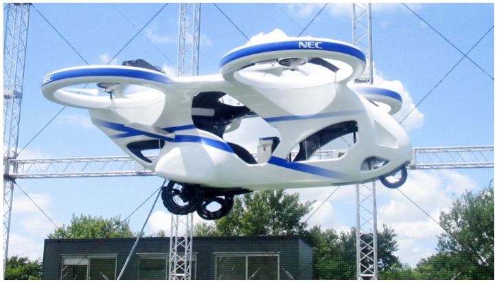 ဂျပန်နိုင်ငံ တိုကျိုအခြေစိုက် သတင်းအချက်အလက်နှင့် နည်းပညာ ဝန်ဆောင်မှု ကုမ္ပဏီ NEC  က ပြီးခဲ့သည့် တနင်္လာနေ့တွင် လျှပ်စစ်စွမ်းအင်အသုံးပြုပြီး ပျံသန်းနိုင်သည့် မော်တော်ကားရှေ့ပြေးပုံစံကို ထုတ်ဖော်ပြသခဲ့သည်။ ကမ္ဘာတစ်ဝန်းရှိ အခြားကုမ္ပဏီများမှာ ယင်းကဲ့သို့ လေကြောင်းပျံသန်းနိုင်သည့် ယာဉ်များအတွက် ၎င်းတို့၏ ဆက်သွယ်ရေးနှင့် ထိန်းချုပ်မှု နည်းပညာများကို ဝန်ဆောင်မှု ပေးနိုင်ရန် ထုတ်ဖော်ပြသလိုက်ခြင်းဖြစ်သည်။
