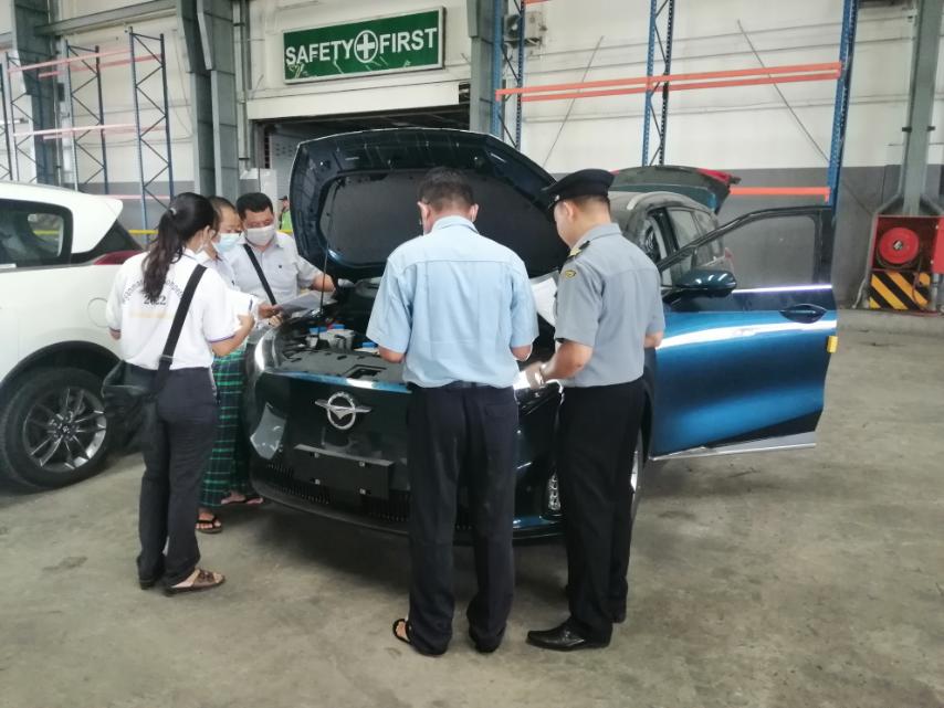 အမျိုးသားအဆင့် လျှပ်စစ်သုံးယာဉ်နှင့် ဆက်စပ်လုပ်ငန်းများဖွံ့ဖြိုးတိုးတက်ရေး ဦးဆောင်ကော်မတီ၏ ခွင့်ပြုချက်ဖြင့် Myanmar Brilliance Auto Co.,Ltd မှ တင်သွင်းလာသော HAIMA 7X-E အမျိုးအစားလျှပ်စစ်သုံးမော်တော်ယာဉ် (၂)စီးသည် ရန်ကုန်တိုင်းဒေသကြီး မြန်မာ့စက်မှု ဆိပ်ကမ်း (MIP) သို့ရောက်ရှိလာပါသဖြင့် ယနေ့တွင် လုပ်ထုံးလုပ်နည်းနှင့်အညီ ထုတ်ယူခွင့်ပြုခဲ့ပါကြောင်းနှင့် အဆိုပါ လျှပ်စစ်သုံးယာဉ်များ တင်သွင်းမှုအတွက် အကောက်ခွန် ကင်းလွတ်ခွင့်ပြုထားကြောင်း သိရသည်။