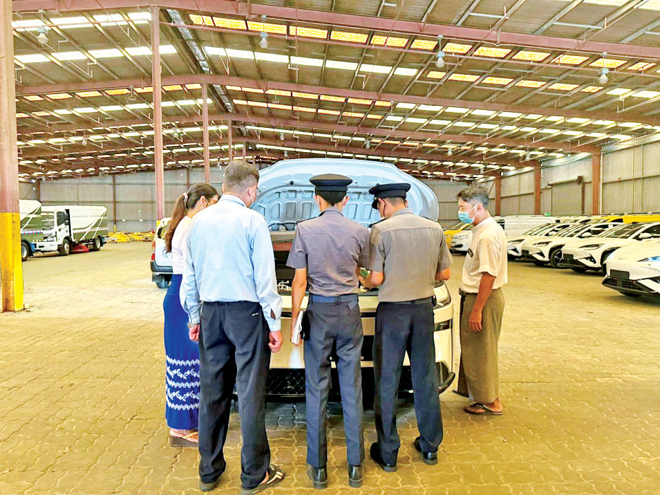 အမျိုးသားအဆင့် လျှပ်စစ်သုံးယာဉ်နှင့် ဆက်စပ်လုပ်ငန်းများ ဖွံ့ဖြိုးတိုးတက်ရေး ဦးဆောင်ကော်မတီ၏ ခွင့်ပြုချက်ဖြင့် T & Z Finance Co., Ltd. က တင်သွင်းလာသော တရုတ်နိုင်ငံထုတ် BYD SEALION 07 အမျိုးအစား လျှပ်စစ်သုံး မော်တော်ယာဉ်များနှင့် Amazing Auto Co., Ltd. က တင်သွင်းလာသော တရုတ်နိုင်ငံထုတ် GAC Toyota BZ3X အမျိုးအစား လျှပ်စစ်သုံးမော်တော်ယာဉ်များ ရန်ကုန်ဆိပ်ကမ်းသို့ ရောက်ရှိလာသဖြင့် စက်တင်ဘာ ၂၃ ရက်တွင် လုပ်ထုံးလုပ်နည်းနှင့်အညီ ထုတ်ယူခွင့်ပြုခဲ့ကြောင်း သိရသည်။