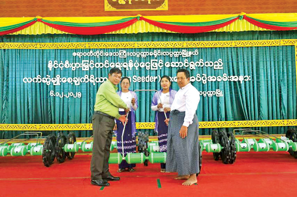 အခမ်းအနားတွင် လပွတ္တာခရိုင် စီမံခန့်ခွဲရေးနှင့် အုပ်ချုပ်ရေးကော်မတီဥက္ကဋ္ဌ ဦးလွင်ကိုဦးက အမှာစကားပြောကြားပြီး လက်ဆွဲမျိုးစေ့ချကိရိယာ ၆၀၀ ကို ကျေးရွာအုပ်စု ၆၅ အုပ်စုသို့ ပေးအပ်သည်။