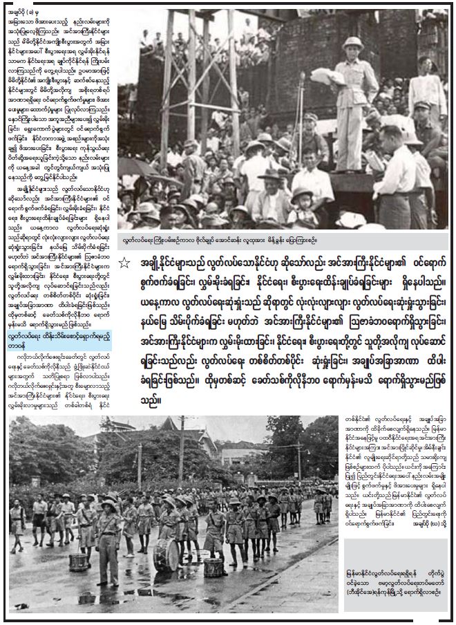 နိုင်ငံတည်ငြိမ်အေးချမ်းပြီး တရားဥပဒေစိုးမိုးမှုရှိစေရေး မိမိတို့အနေဖြင့် ဒီမိုကရေစီနည်းလမ်းဖြင့် ဆောင်ရွက်လျက်ရှိ တည်ငြိမ်အေးချမ်းပြီး တရားဥပဒေစိုးမိုးမှုရှိမှသာ ပြည်သူများ အလုပ်အကိုင်များ အဆင်ပြေချောမွေ့ပြီး နိုင်ငံဖွံ့ဖြိုးတိုးတက်လာမည်