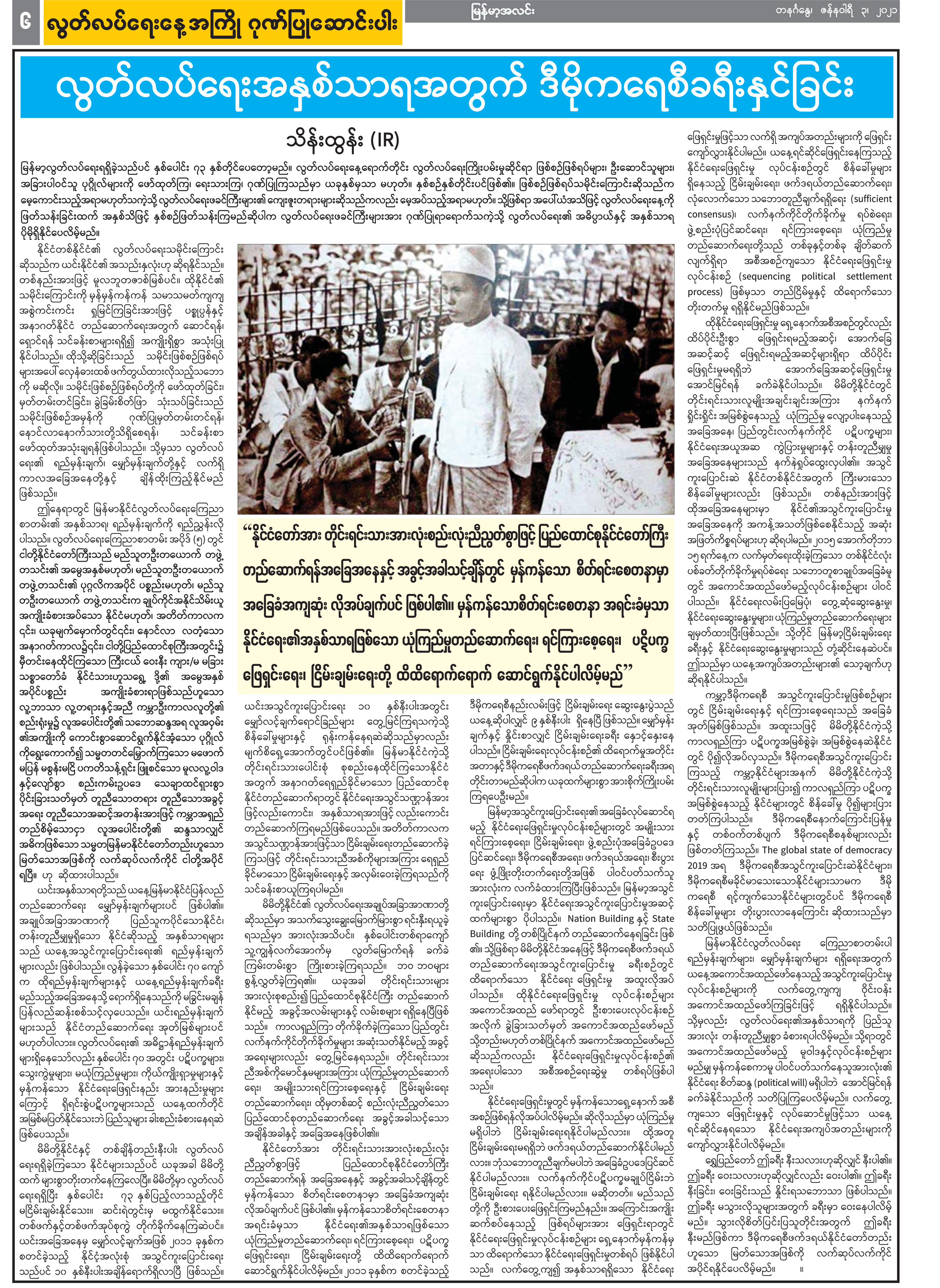 နိုင်ငံတည်ငြိမ်အေးချမ်းပြီး တရားဥပဒေစိုးမိုးမှုရှိစေရေး မိမိတို့အနေဖြင့် ဒီမိုကရေစီနည်းလမ်းဖြင့် ဆောင်ရွက်လျက်ရှိ တည်ငြိမ်အေးချမ်းပြီး တရားဥပဒေစိုးမိုးမှုရှိမှသာ ပြည်သူများ အလုပ်အကိုင်များ အဆင်ပြေချောမွေ့ပြီး နိုင်ငံဖွံ့ဖြိုးတိုးတက်လာမည်