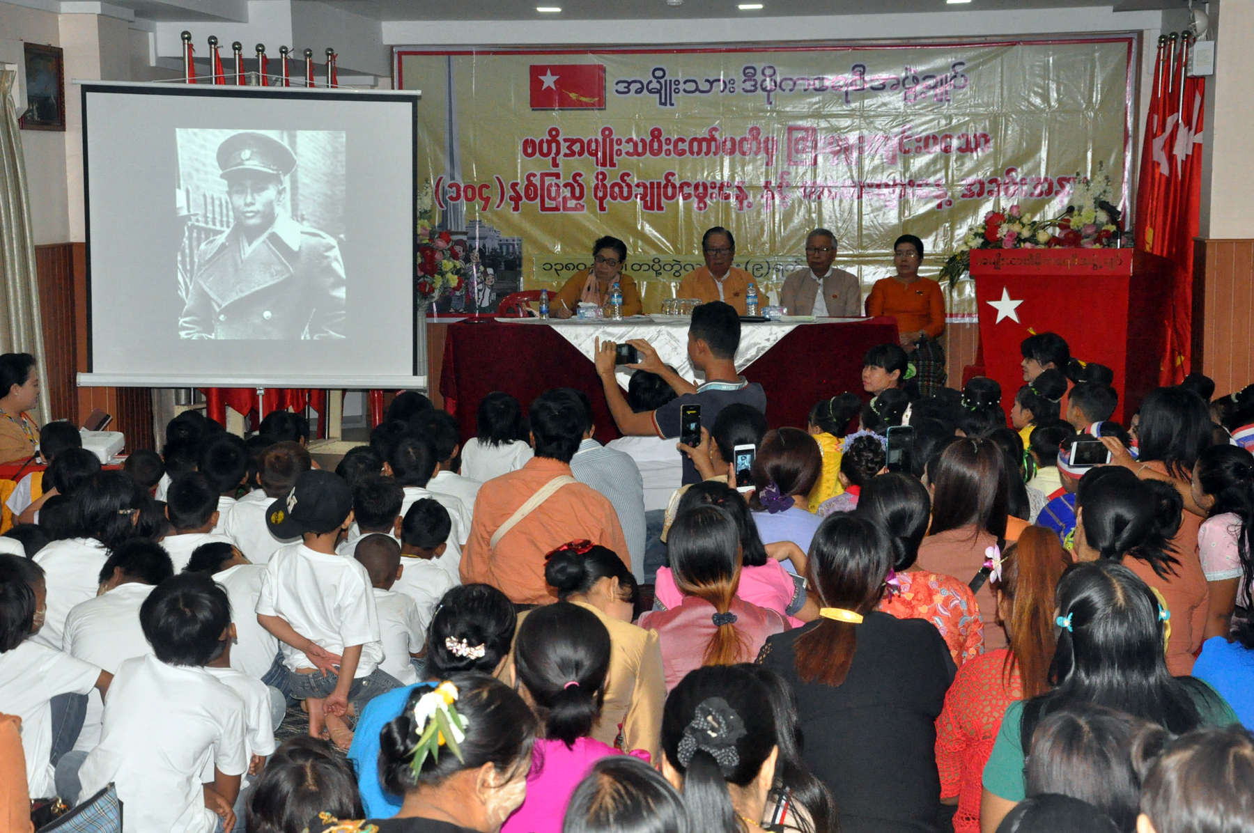 ထို့နောက် ဗိုလ်ချုပ်အောင်ဆန်း၏ စိတ်ဓာတ်ကို ကလေးငယ်များ အတုယူနိုင်စေရန် ရည်ရွယ်၍ နိုင်ငံတော်၏ အတိုင်ပင်ခံပုဂ္ဂိုလ် ဒေါ်အောင်ဆန်းစုကြည် ပြောပြသည့် ဗိုလ်ချုပ်အောင်ဆန်းအကြောင်း အစီအစဉ် ဗီဒီယို မှတ်တမ်းကိုပြသပြီး ကျောင်းသား၊ ကျောင်းသူလေးများက အကအလှများဖြင့် ဖျော်ဖြေတင်ဆက်ကြသည်။