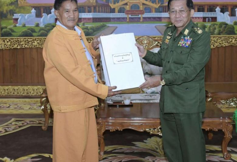 နိုင်ငံတော်စီမံအုပ်ချုပ်ရေးကောင်စီဥက္ကဋ္ဌ တပ်မတော်ကာကွယ်ရေးဦးစီးချုပ် ဗိုလ်ချုပ်မှူးကြီး မင်းအောင်လှိုင်သည် ရှမ်းပြည်တိုးတက်ရေးပါတီ (SSPP) မှ ဒုတိယဥက္ကဋ္ဌ (၁) စဝ်ခေးတိုင်းဦးဆောင်သည့် ငြိမ်းချမ်းရေးကိုယ်စားလှယ်အဖွဲ့အား ယနေ့နံနက်ပိုင်းတွင် နေပြည်တော်ရှိဘုရင့်နောင်ရိပ်သာ ဧည့်ခန်းမဆောင်၌တွေ့ဆုံ၍ ငြိမ်းချမ်းရေးဆိုင်ရာကိစ္စရပ်များ ဆွေးနွေးသည်။