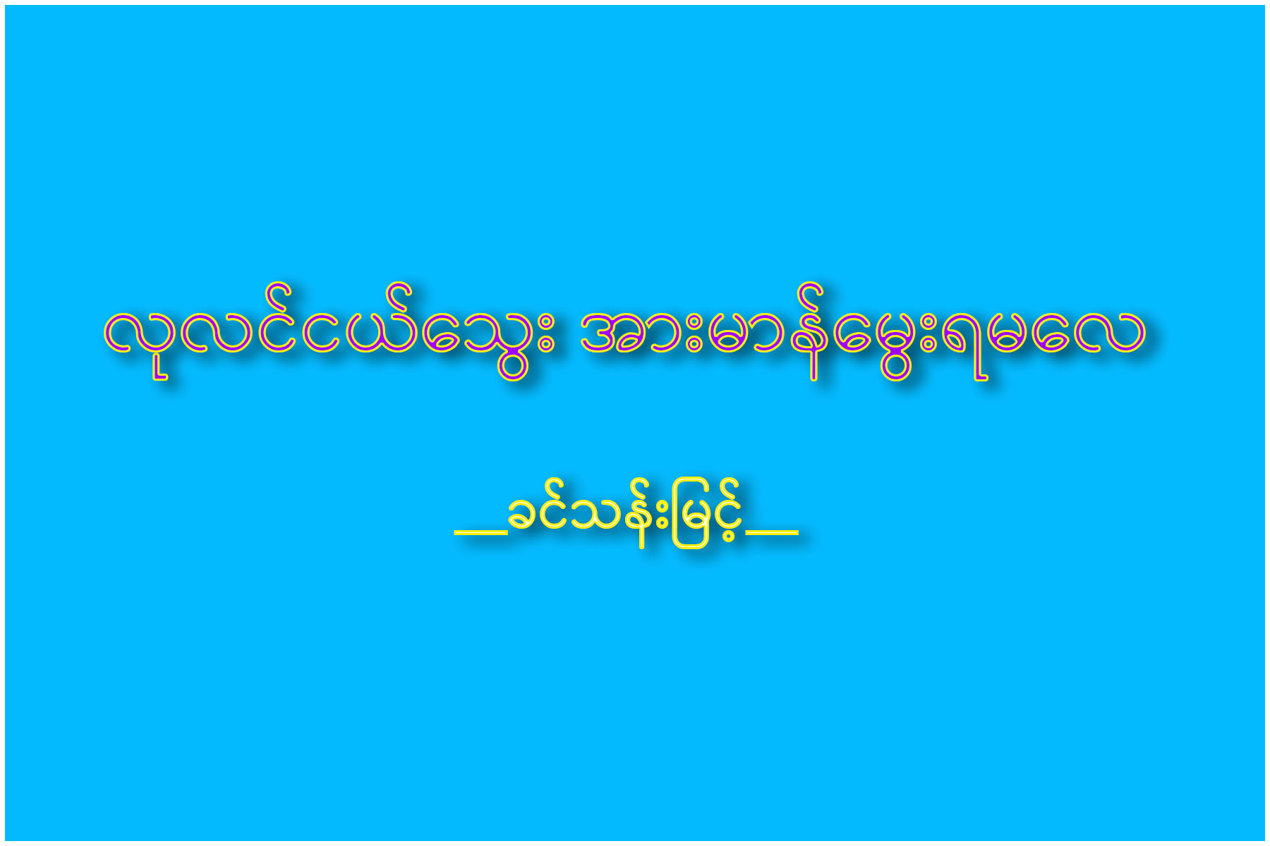 မည်သူမဆို ကူညီသည်ဖြစ်စေ၊ မည်သူမဆို မကူညီသည်ဖြစ်စေ၊ ကိုယ်ထူကိုယ်ထ ကိုယ့်ဘဝ အခြေအနေ၊ ကိုယ့်အားကိုယ်ကိုးမှ ကိုယ်သာသခင် ဖြစ်ပေ၊ ဝန်ထမ်းရွှင်လန်း၊ ပန်းတိုင်ကိုအရောက် လျှောက်နိုင်ဖို့လေ၊ လုလင်ငယ်သွေး အားမာန်မွေး ရမလေ
