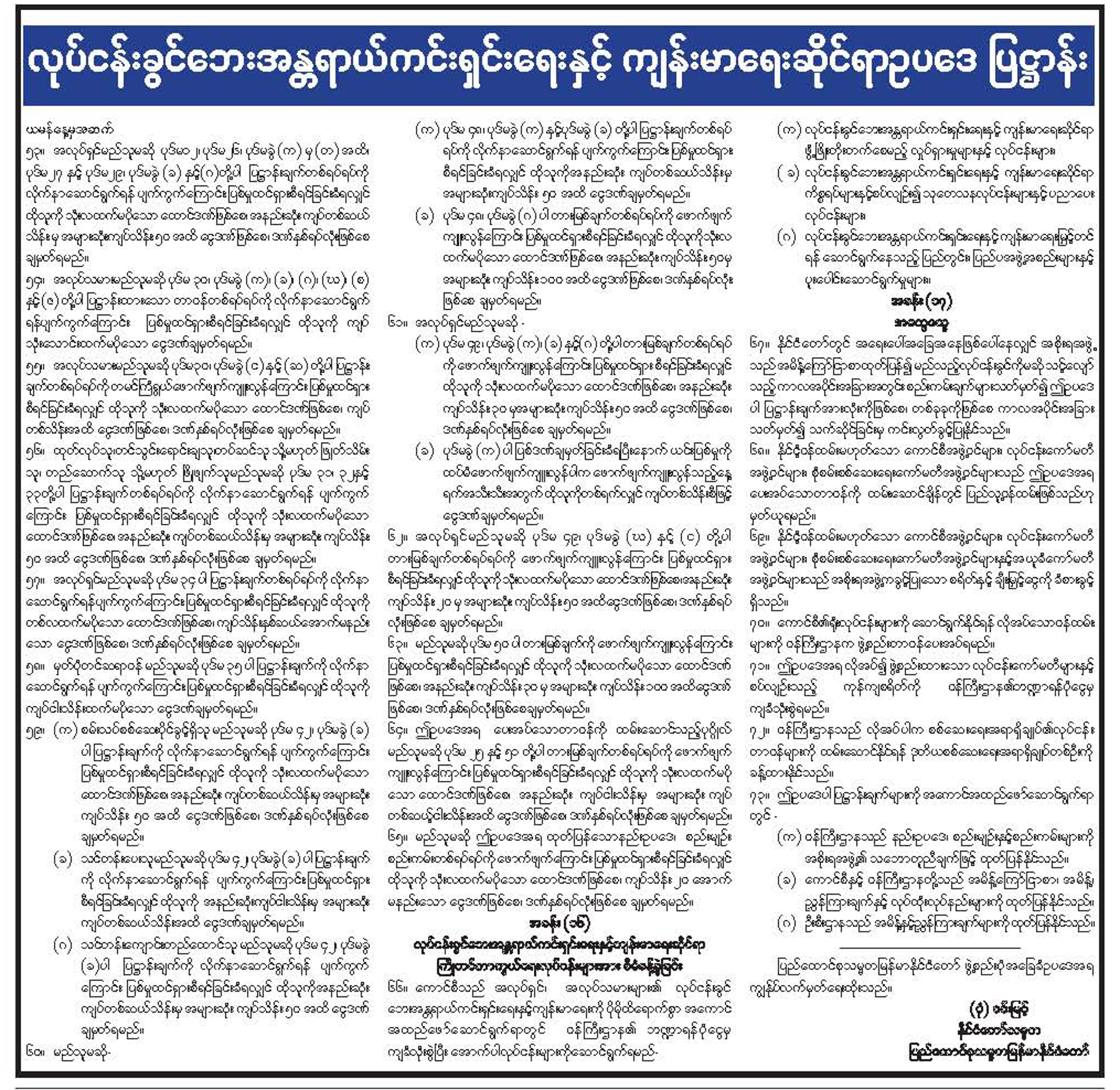 လုပ်ငန်းခွင် ဘေးအန္တရာယ်ကင်းရှင်းရေးနှင့် ကျန်းမာရေးဆိုင်ရာဥပဒေပြဌာန်း