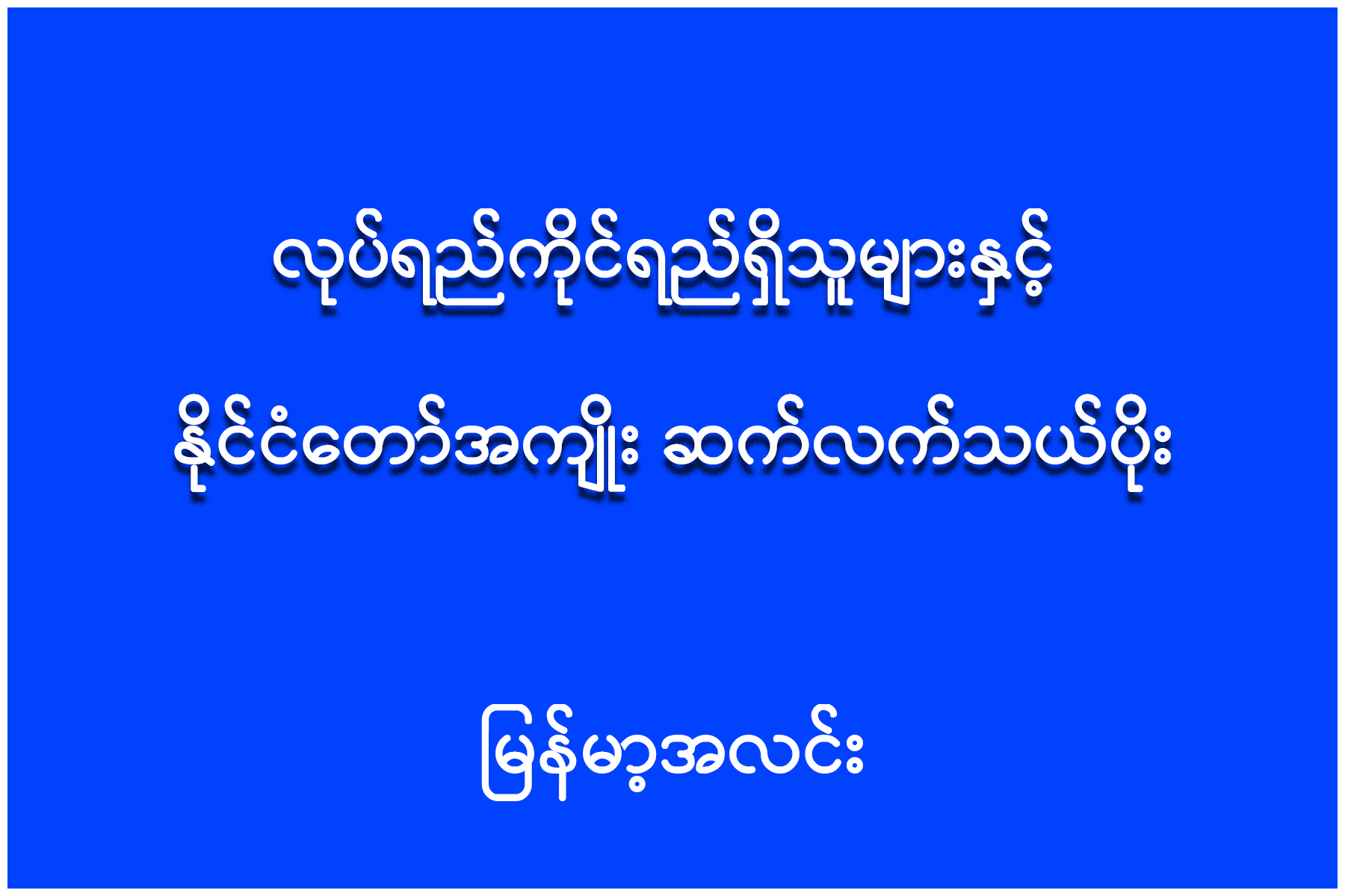 မြန်မာနိုင်ငံသည် ရေခံမြေခံ၊ အခြေခံကောင်းများရှိပြီးဖြစ်သည့် နိုင်ငံဖြစ်သည်။ နိုင်ငံတော်၏ လုပ်ငန်းစဉ်များ၊ ရည်မှန်းချက်များ၊ စီမံကိန်းများကို လုပ်ရည်ကိုင်ရည် ရှိသူများ၊ နိုင်ငံတော်ကို ကောင်းမွန်စေလိုသော စေတနာရှိသူများအားလုံး လက်တွဲပူးပေါင်းကြိုးပမ်းဆောင်ရွက်ကြပါက နိုင်ငံတော်အနေဖြင့် စိန်ခေါ်မှုနှင့် အကျပ်အတည်းများ မည်သို့ရှိသည်ဖြစ်စေ အခက်အခဲ မှန်သမျှတို့အား လွန်မြောက်ကျော်လွှားပြီး နိုင်ငံအကျိုးကို အောင်မြင်စွာဆောင်ရွက်နိုင်မည်ဖြစ်သည်။