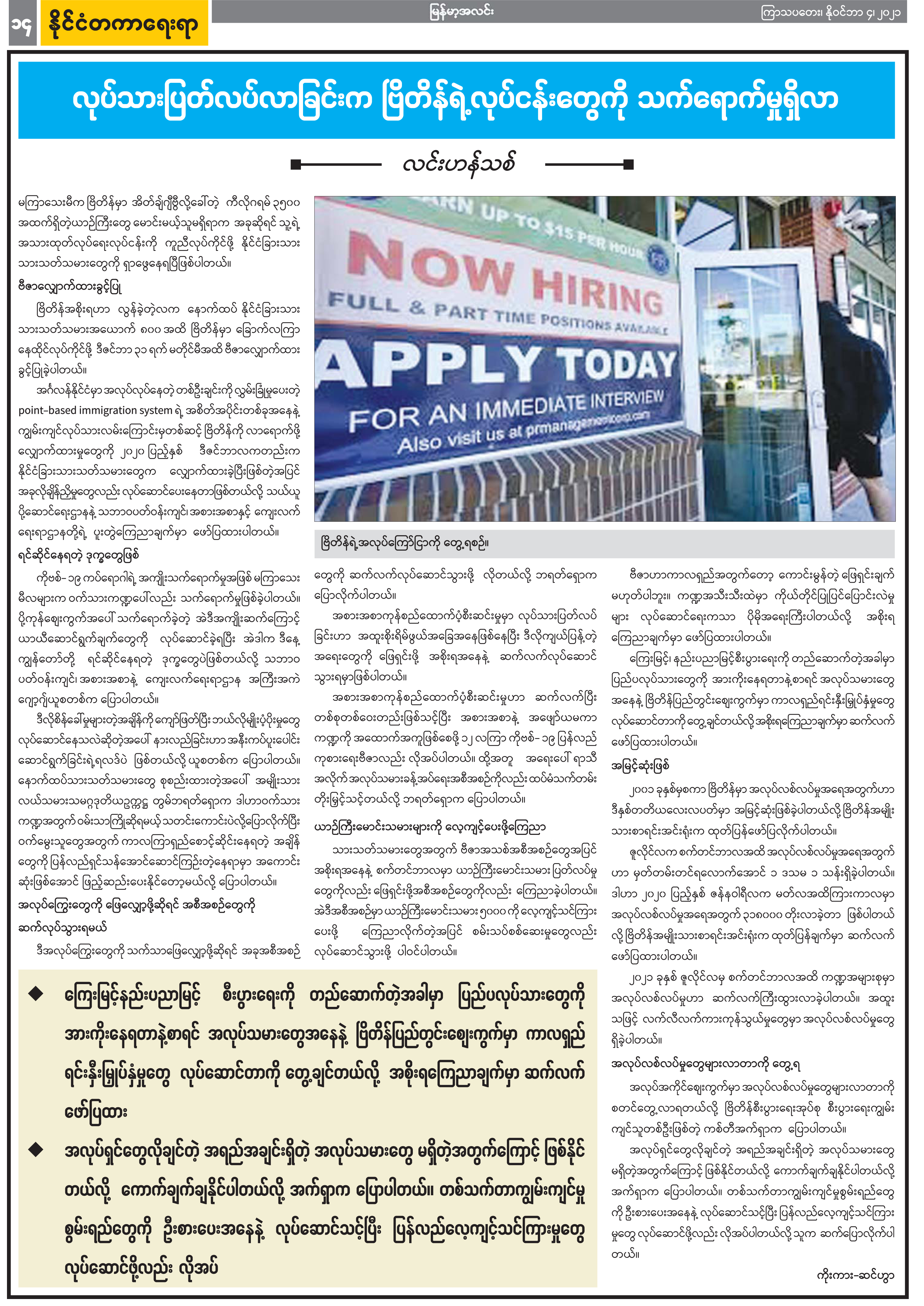 လုပ်သားပြတ်လပ်လာခြင်းက ဗြိတိန်ရဲ့လုပ်ငန်းတွေကို သက်ရောက်မှုရှိလာ