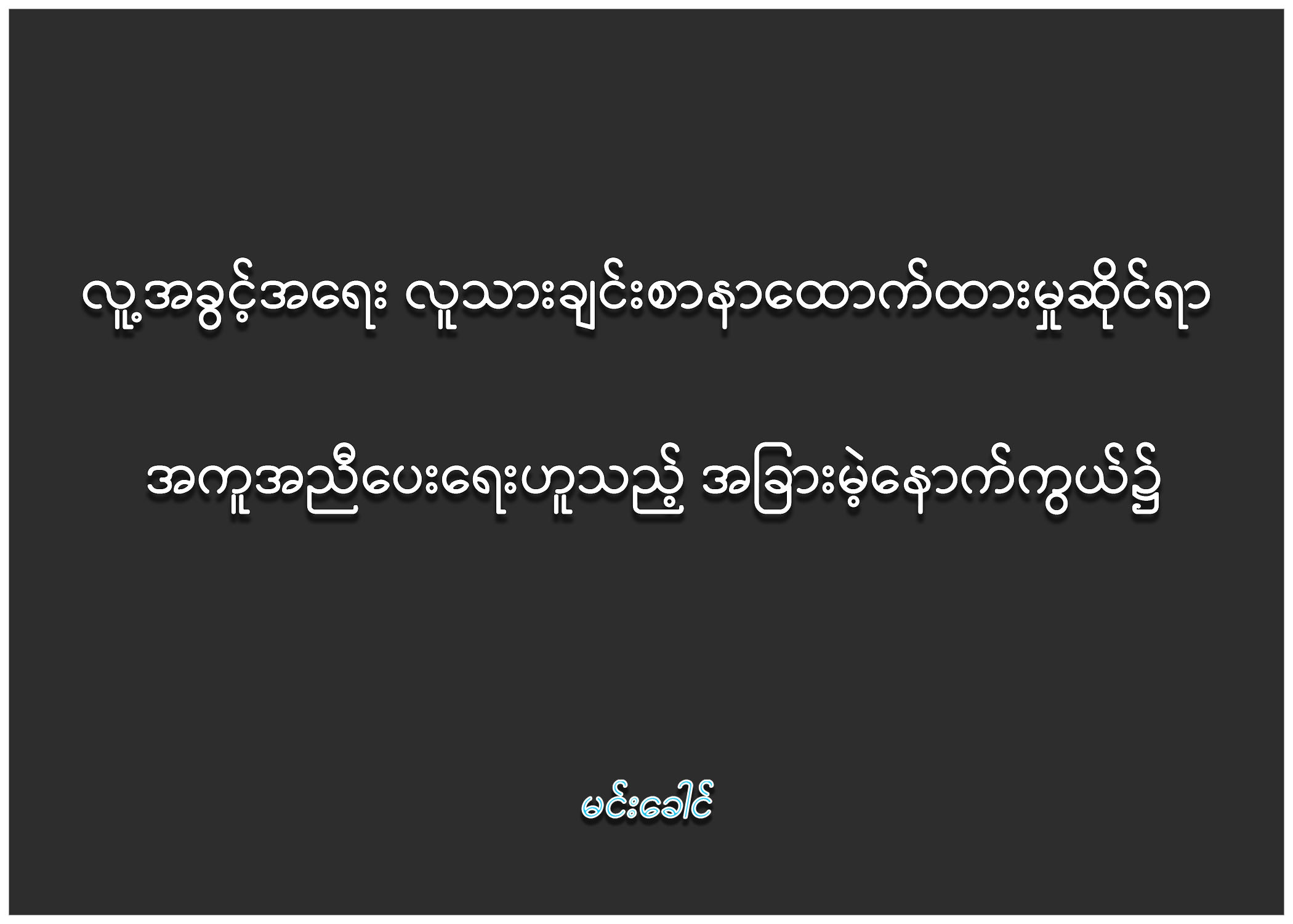 တစ်နည်းအားဖြင့် ယနေ့ကမ္ဘာတွင် ရေပန်း စားနေသော ဒီမိုကရေစီရေး၊ ငြိမ်းချမ်းရေး၊ လူ့အခွင့်အရေး၊ လူသားချင်းစာနာထောက်ထားမှုဆိုင်ရာ အကူအညီပေးရေးဟူသည့် စကားလုံးများ၏ အခြားမဲ့နောက်ကွယ်၌ အမျိုးသားအကျိုးစီးပွားအပေါ် အခြေခံမှုများ၊ ဗိုလ်ကျစိုးမိုးမှုများ၊ ကိုယ်ကျိုး စီးပွားကိုရှေ့တန်းတင်၍ ဘယ်သူသေသေ ငတေမာ ပြီးရောဟူသည့် အကျင့်ပျက်ခြစားမှုများ တောထ ဗွက်ပေါက်လျက်ရှိနေသည်ကို တွေ့မြင်သွားခြင်း ဖြစ်ပေသည်။