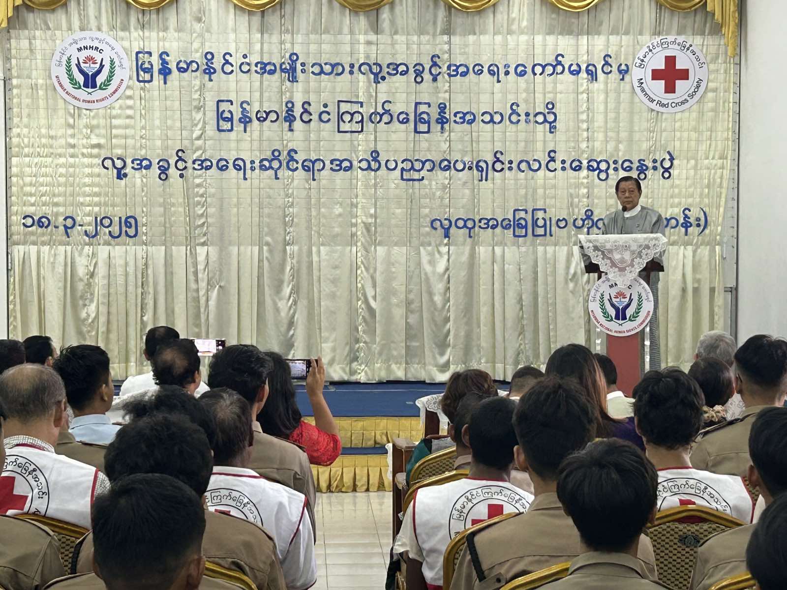 မြန်မာနိုင်ငံ အမျိုးသားလူ့အခွင့်အရေး ကော်မရှင်သည် ကော်မရှင်ဥပဒေပုဒ်မ ၂၂ (က) ပါ ပြဋ္ဌာန်းချက် များနှင့်အညီ အများပြည်သူ၏ လူ့အခွင့်အရေး အသိပညာမြင့်မားလာစေရန် ရည်ရွယ်၍ လူ့အခွင့် အရေးဆိုင်ရာအသိပညာပေး ဆွေးနွေး‌ဟောပြောပွဲများ၊ အလုပ်ရုံ ဆွေးနွေး ပွဲများ၊ သင်ခန်းစာပို့ ချမှုများ၊ စာအုပ်စာတမ်းများနှင့် သတင်းအချက်အလက်များ ဖြန့်ချိခြင်းတို့ကို ဆောင်ရွက်လျက် ရှိရာ ၂၀၂၅ ခုနှစ် လုပ်ငန်းဆောင်ရွက်မှုများအတွက် ရှေ့လုပ်ငန်းစဥ်မူဘောင်အရ နှစ်စဥ် လုပ်ငန်းစီမံချက်ကို အကောင် အထည် ဖော်သည့်အနေဖြင့် မြန်မာနိုင်ငံကြက်ခြေနီအသင်းမှ ဝန်ထမ်းများနှင့် ကြက်ခြေနီစေတနာ့ လုပ်အား ရှင်များ လူ့အခွင့်အရေးအသိပညာ ဗဟုသုတများ တိုးပွားလာစေရန် ရည်ရွယ်၍ လူ့အခွင့်အရေး ဆိုင်ရာ အသိပညာပေး ရှင်းလင်း ဆွေးနွေးပွဲကို  ယနေ့ မွန်းလွဲ ၁ နာရီတွင် ရန်ကုန် တိုင်းဒေသကြီး၊ ဗဟန်းမြို့နယ်ရှိ လူထုအခြေပြု ဗဟိုဌာနခန်းမ၌  ကျင်းပသည်။