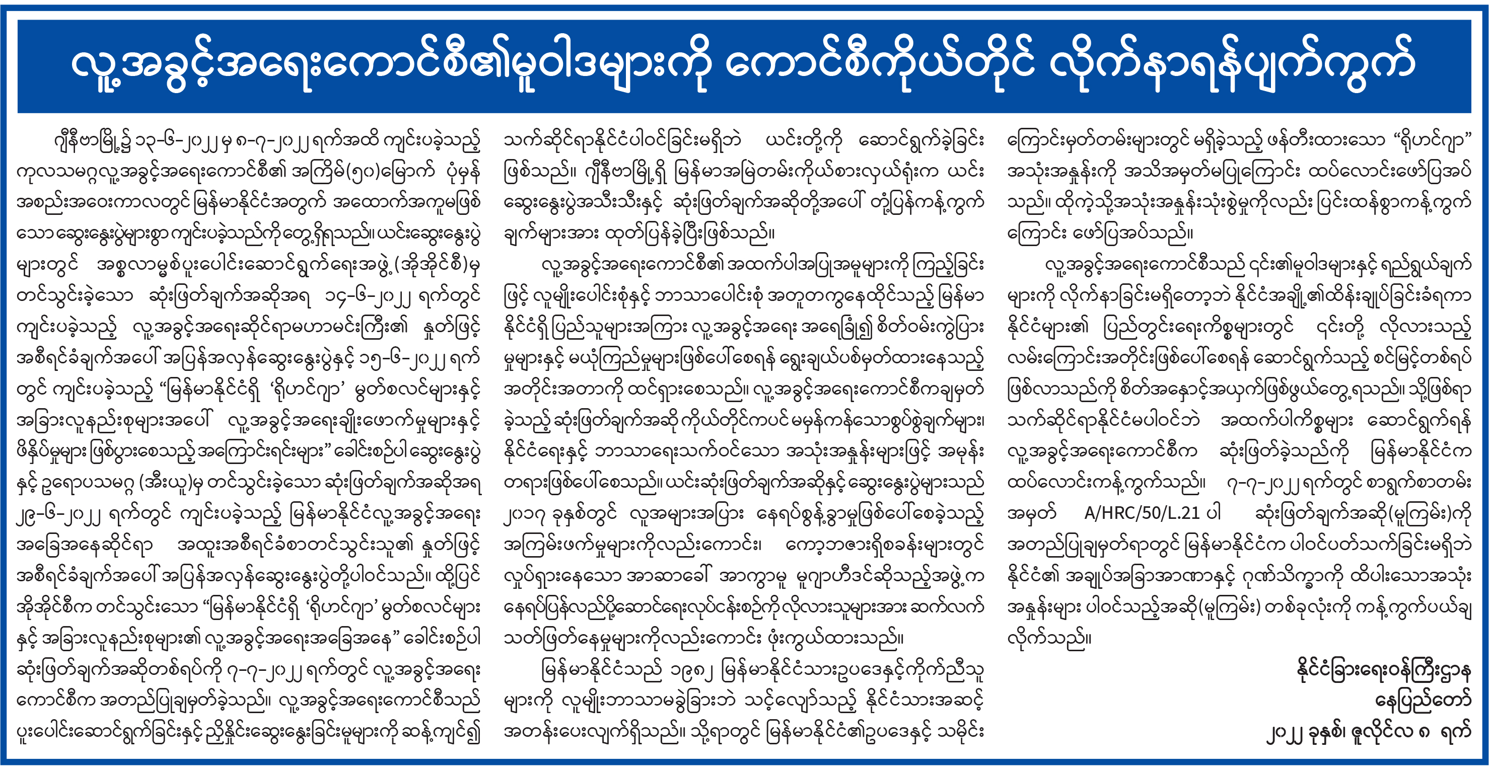 လူ့အခွင့်အရေးကောင်စီ၏မူဝါဒများကို ကောင်စီကိုယ်တိုင် လိုက်နာရန်ပျက်ကွက်