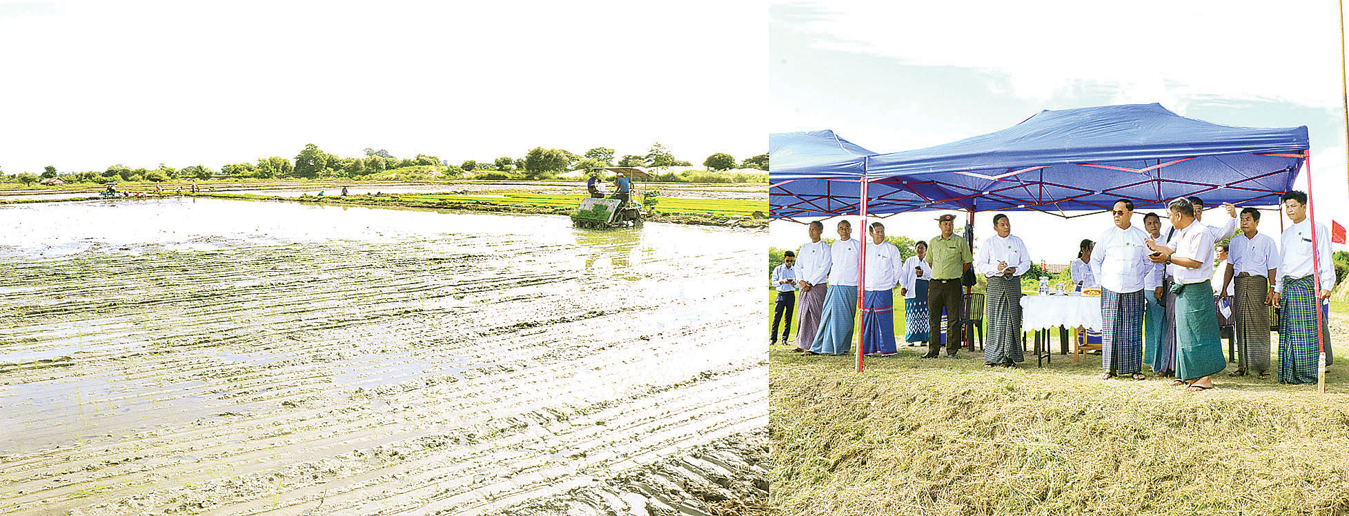 လူစီးကောက်စိုက်စက်ဖြင့် မိုးစပါးစိုက်ပျိုးသရုပ်ပြပွဲကို ယနေ့နံနက်ပိုင်းတွင် နေပြည်တော်ကောင်စီနယ်မြေ လယ်ဝေးမြို့နယ် ရုံးတောကျေးရွာရှိ ရွှေဝါထွန်း(၂) စိုက်ပျိုးထုတ်လုပ်ရေးသမဝါယမအသင်းလီမိတက်၏ အသင်းပိုင်လယ်မြေဧက ၂၀ ၌ကျင်းပရာ သမဝါယမနှင့်ကျေးလက်ဖွံ့ဖြိုးရေးဝန်ကြီးဌာန ပြည်ထောင်စုဝန်ကြီး ဦးလှမိုး၊ အမြဲတမ်းအတွင်းဝန်၊ ဌာနဆိုင်ရာများ၊ မြန်မာနိုင်ငံမြေဩဇာ၊ မျိုးစေ့နှင့် စိုက်ပျိုးရေးဆေးလုပ်ငန်းရှင်များအသင်းနှင့် မြန်မာနိုင်ငံဆန်စပါးအသင်းချုပ်တို့မှ ကိုယ်စားလှယ်များ၊ မြန်မာနိုင်ငံတော်ဗဟိုဘဏ်၊ မြန်မာ့စီးပွားရေးဘဏ်နှင့် ဦးစီးဌာနများမှ ဦးဆောင်ကော်မတီအဖွဲ့ဝင်များနှင့် တာဝန်ရှိသူများ တက်ရောက်ကြသည်။